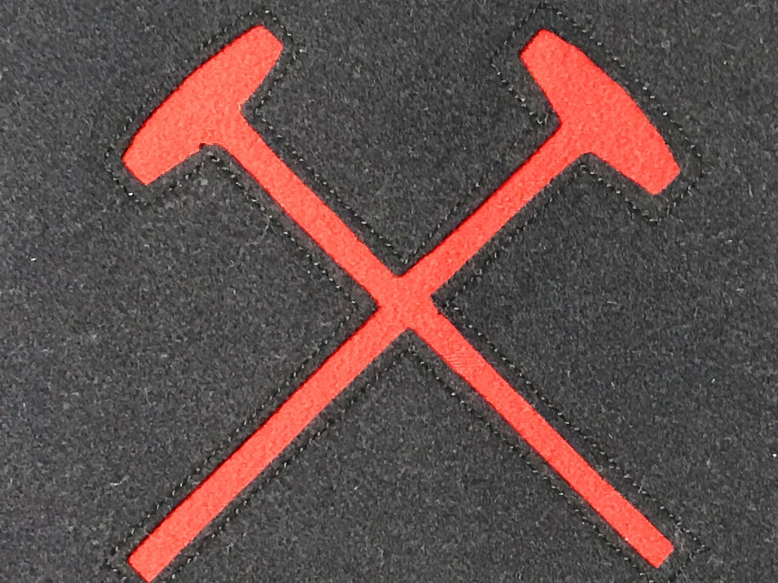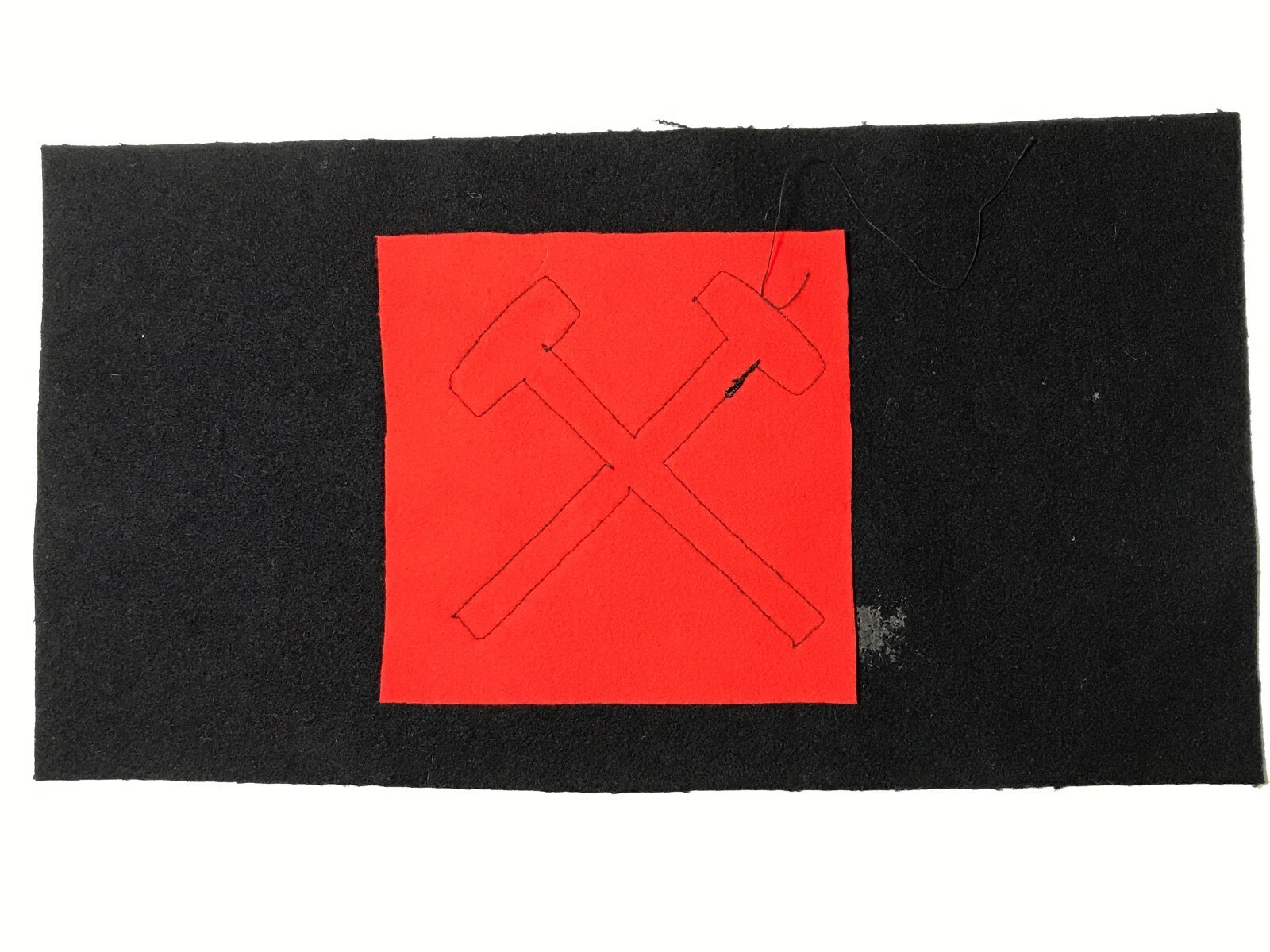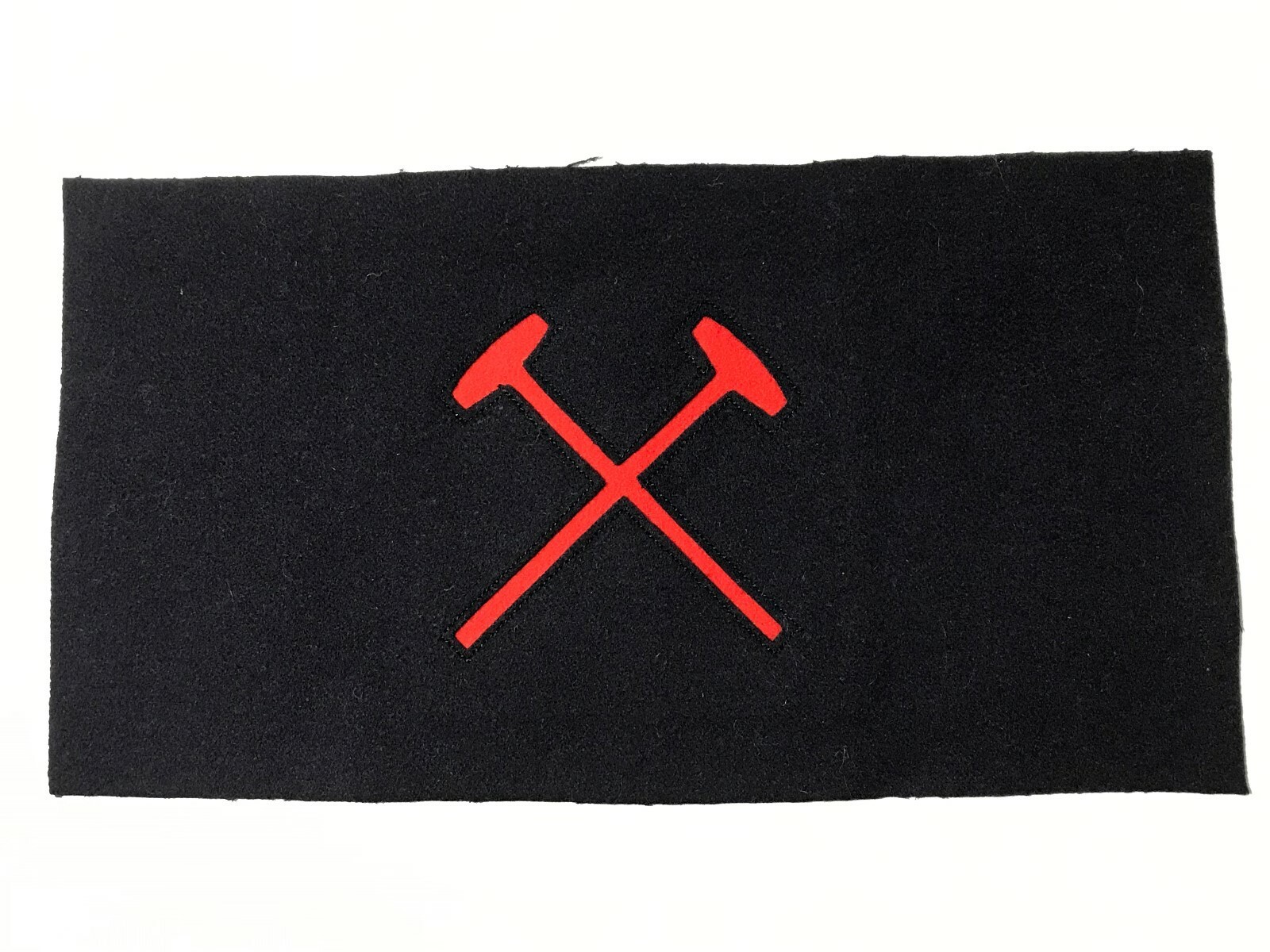 This is an original Indian War Period U.S. Army, Artillery, Artificer, Mechanic, Brassard. Worn on the upper sleeve of the soldier's uniform coat, this piece is one of the distinctive enlisted insignias of the Indian War, Spanish American War periods. The combination of Dark Blue and Red wool creates an attractive piece and makes for a nice addition to your collection. A complete unissued, unused brassard with no damage or moth holes. This piece originates from an established collection of Indian War period Chevrons. This piece was removed from the collectors display and shows evidence of paper/glue. The patterns were cut by hand with a steel die that was hit over the wool with a hammer. In many cases, the soldier would cut out the crossed hammers and sew it onto their uniform to reduce their time sewing. There was no reaction to ultraviolet light. We will be listing more original U.S. Army Indian War Chevrons from this collection as time permits.