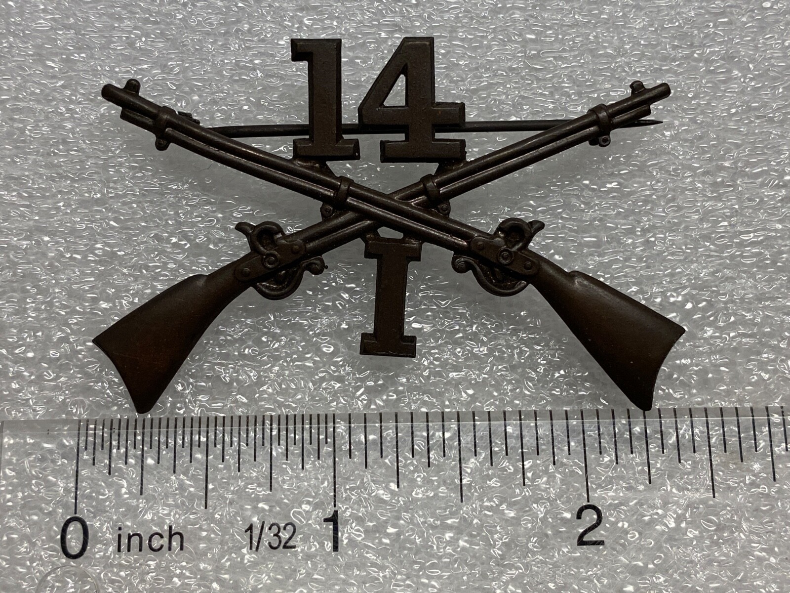 U.S. ARMY, CIRCA 1875-1896, 14th INFANTRY REGIMENT, COMPANY I, CAP INSIGNIA, PINBACK