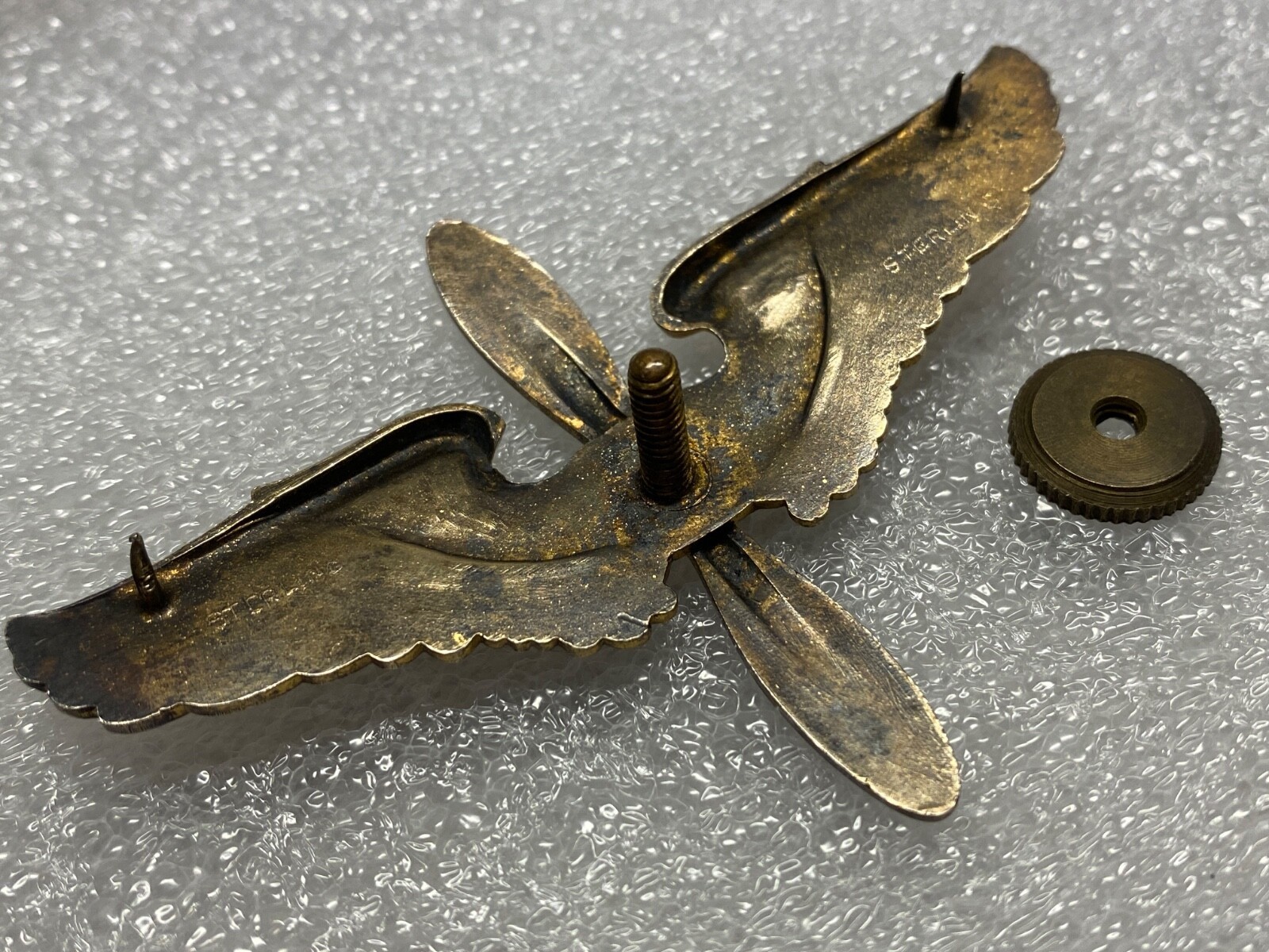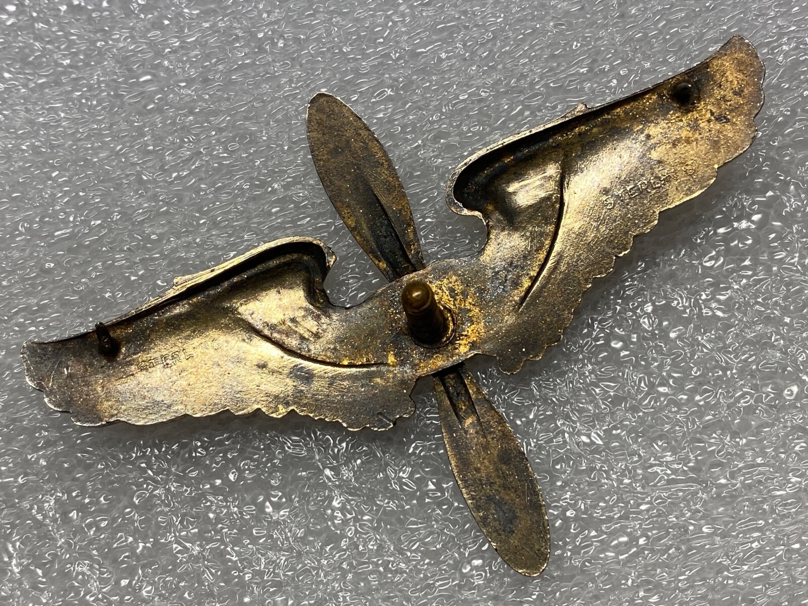 Hallmarked ?STERLING? on each side of the wings. Screwback post.