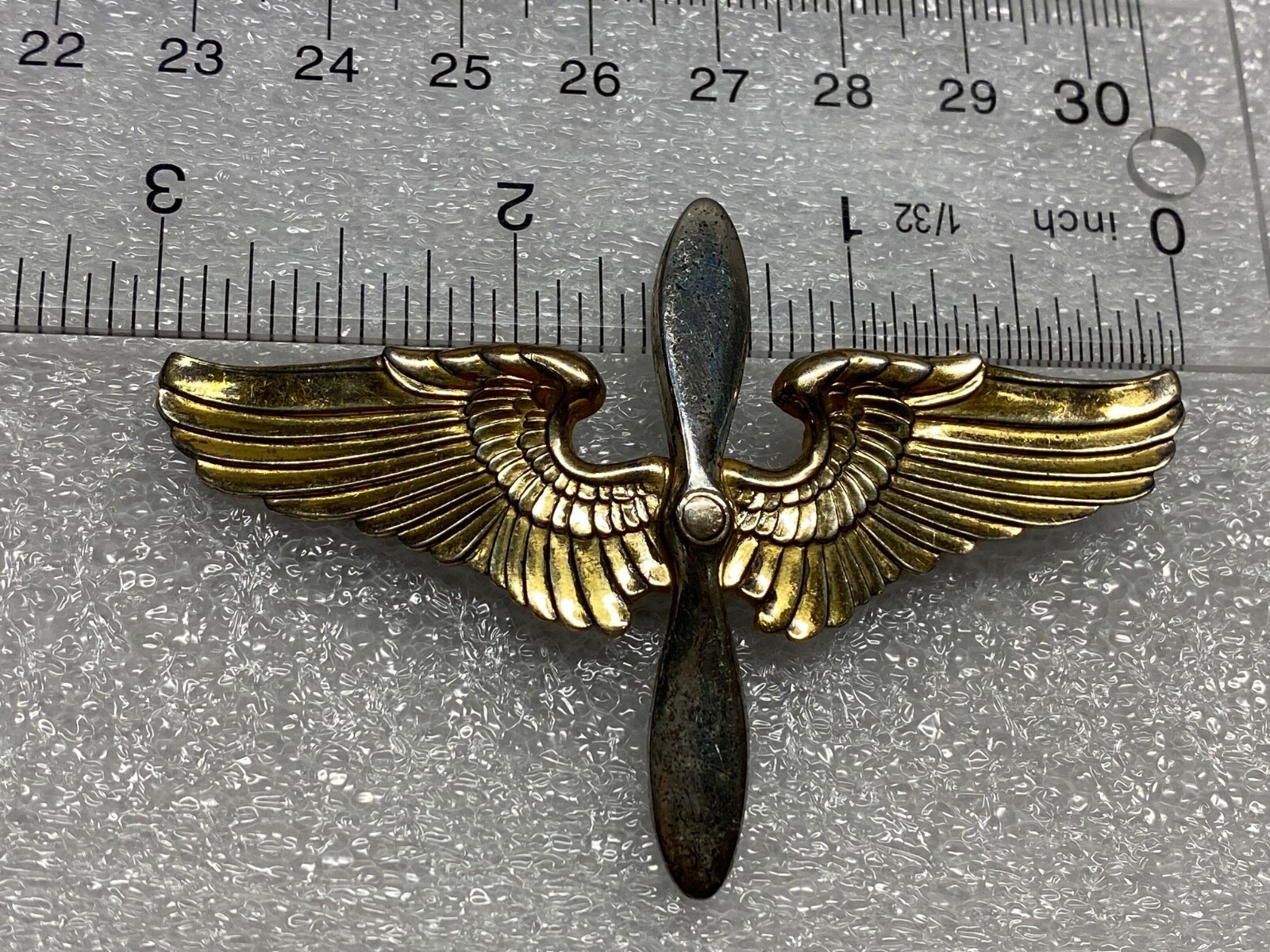 WWII, ARMY AIR CORPS, AVIATION CADET, OVERSEAS CAP WING BADGE, 3? STERLING