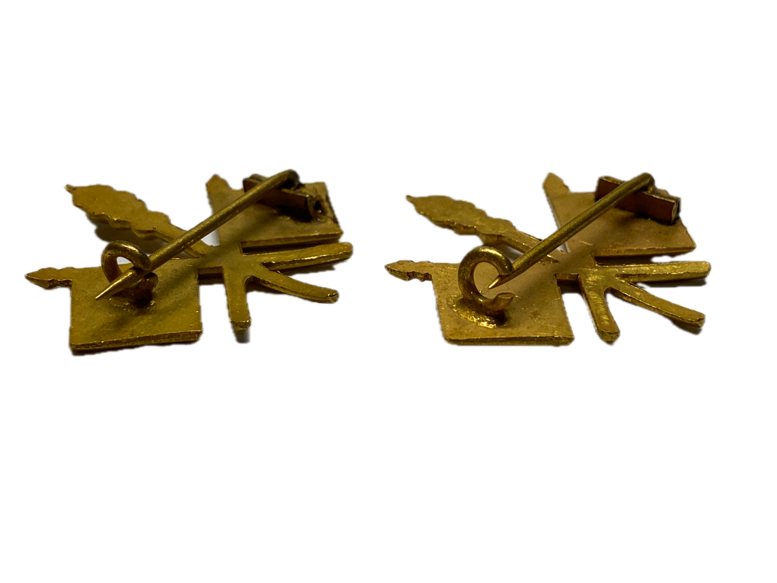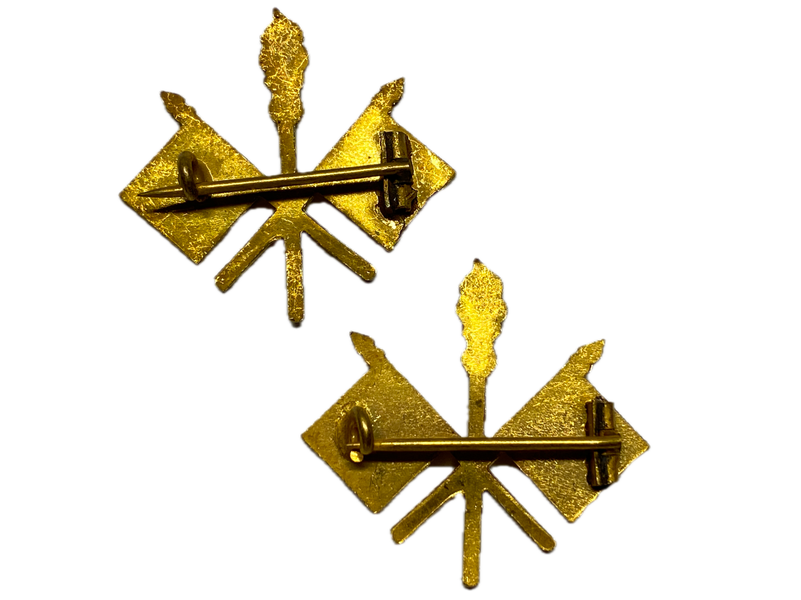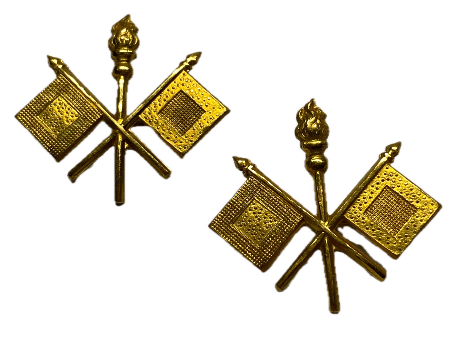 CIRCA 1900-1902, SIGNAL, ENLISTED, COAT COLLAR INSIGNIA, GILT, TEXTURED FLAGS