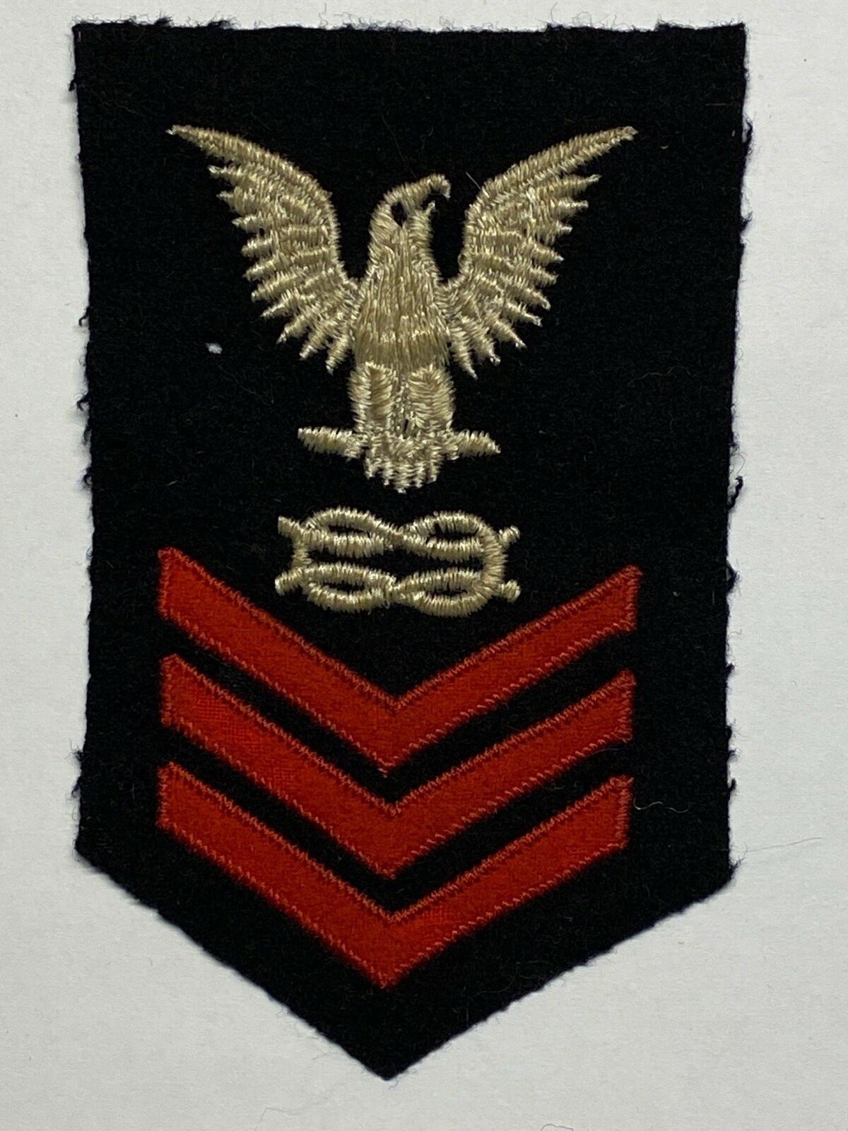 Right facing. These apprentice rates were only worn at the U.S.N. boot camp. Within a Navy Recruit Company there are various positions of responsibility assigned to Recruits. Prior to '85, they were standard things like Platoon Leaders, Squad Leaders, Recruit Chief Petty Officer, Recruit Leading PO, Master-At-Arms and assorted administrative positions like Yeoman, Gunners Mate, Damage Control PO, Laundry PO and so forth. Each of these men was given these rates to wear to Identify them in their positions, CPO through PO3. After '85, the positions were renamed to more "Naval" sounding, like "Watch Section Leader" instead of "Platoon Leader", Work Center Supervisor" vise "Squad Leader". This was to get the recruits used to what they would hear in the fleet.