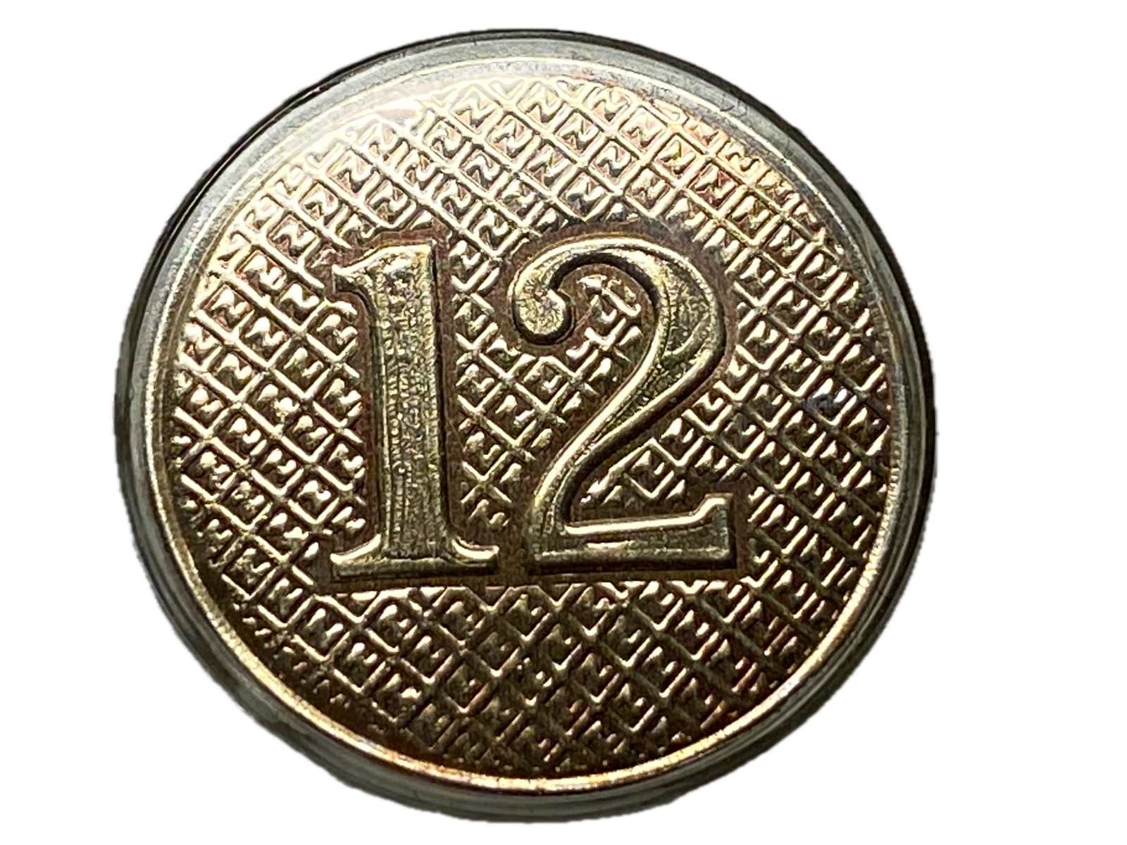 WWII, 12th REGIMENT, NEW YORK STATE GUARD, PLASTIC COLLAR DISK, ENLISTED, GILT