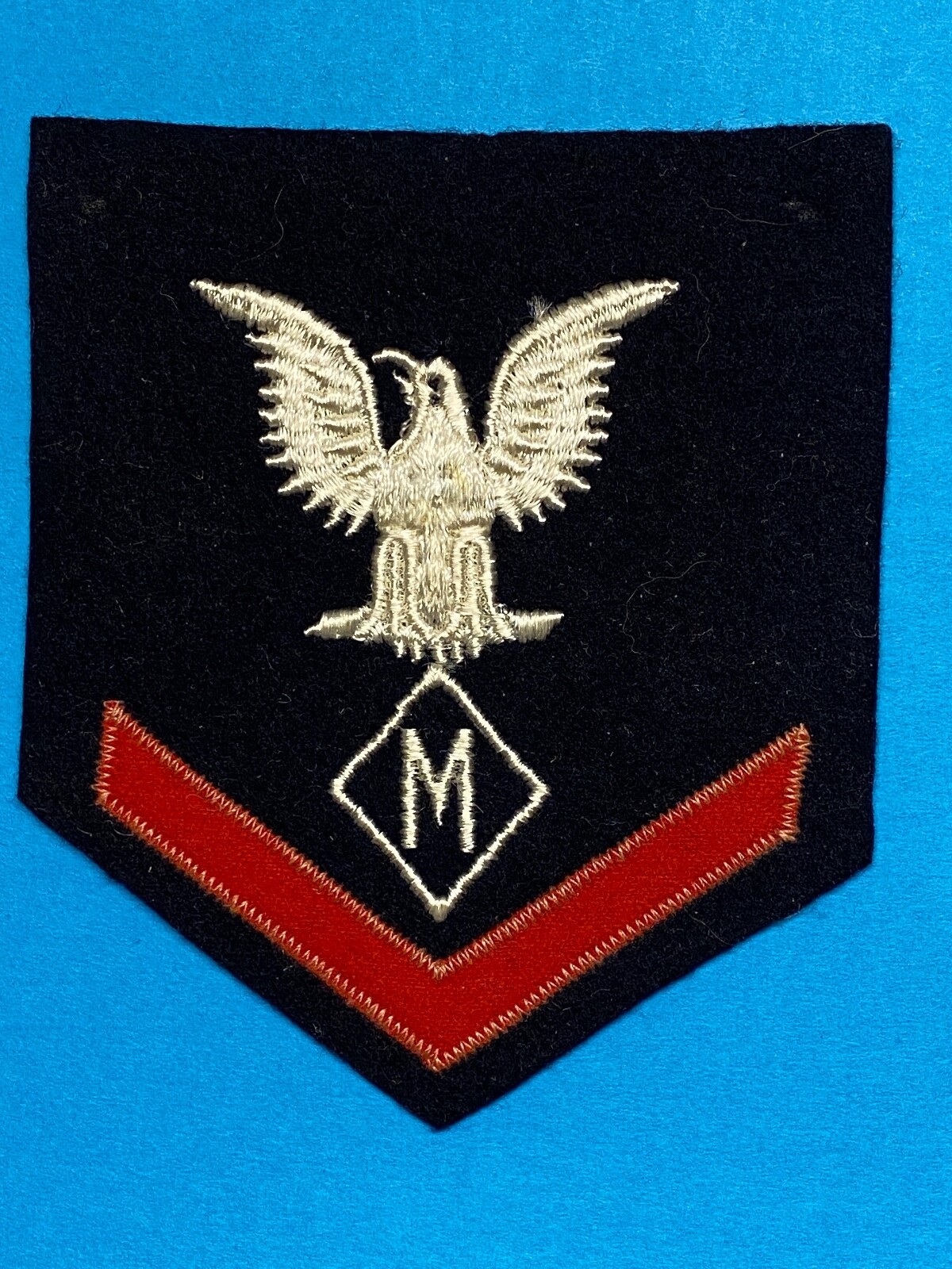 WWII, UNITED STATES NAVY, U.S.N. SPECIALIST, MAIL CLERK, 3rd CLASS, RED ON BLUE, RATE