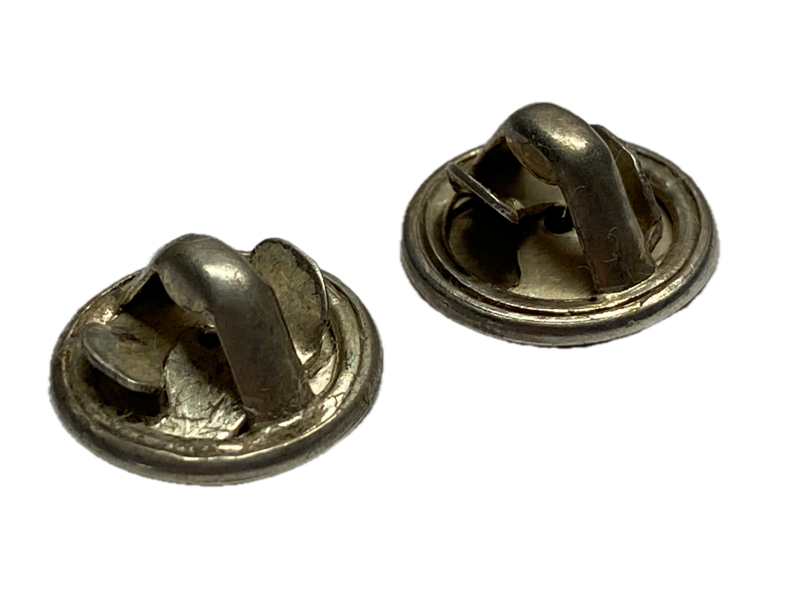 This is for a set of two (2) Sterling Silver Clutch Fasteners, or better known as Clutch Backs. These are hallmarked ?PATENT PENDING STERLING? with the Ballou Star Hallmark. Nice addition for your prized sterling silver insignia. Sterling Silver, 12.5mm.