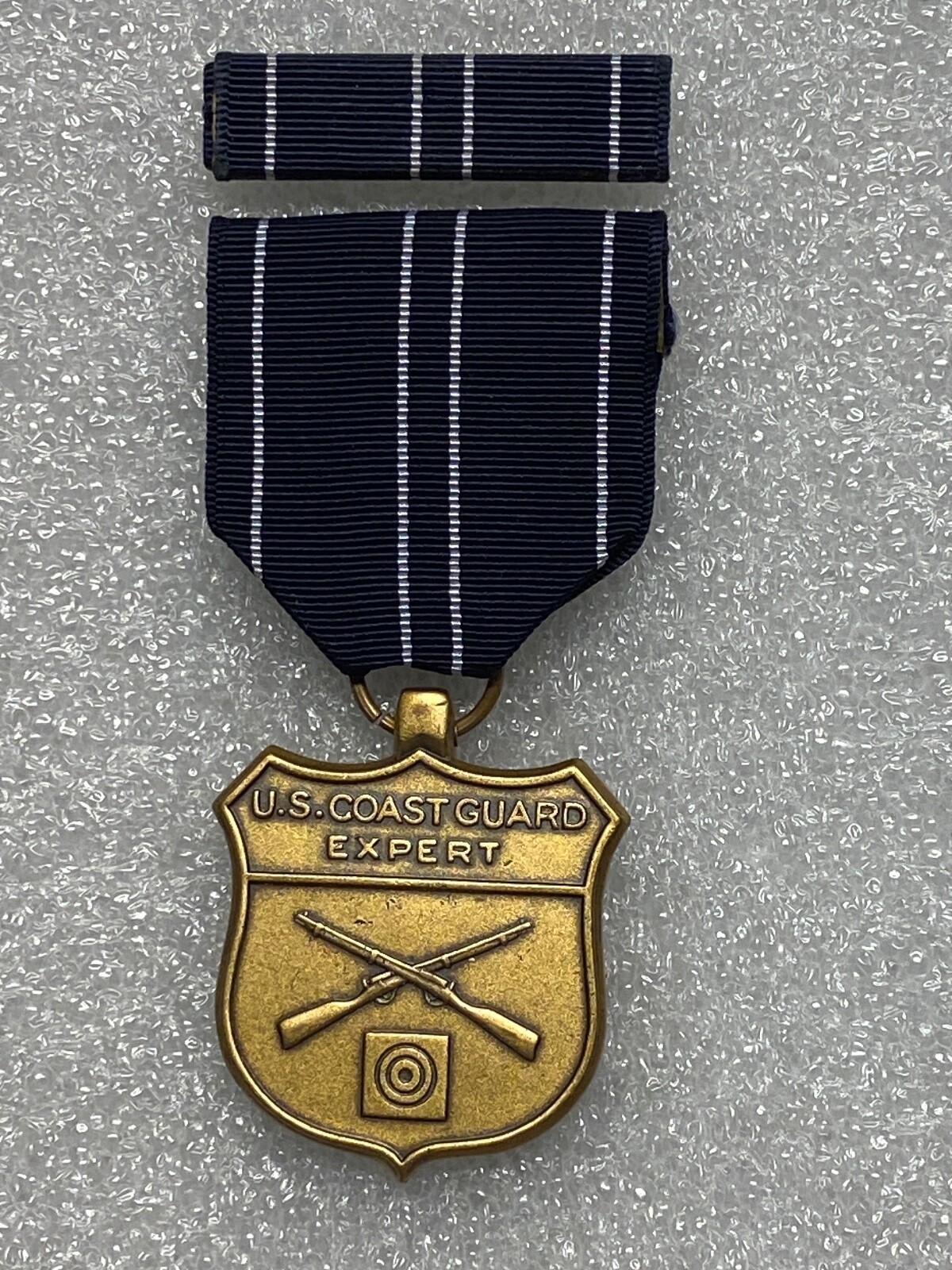 U.S. COAST GUARD, USCG, EXPERT RIFLEMAN, MEDAL, CRIMPED BROOCH, WITH RIBBON BAR