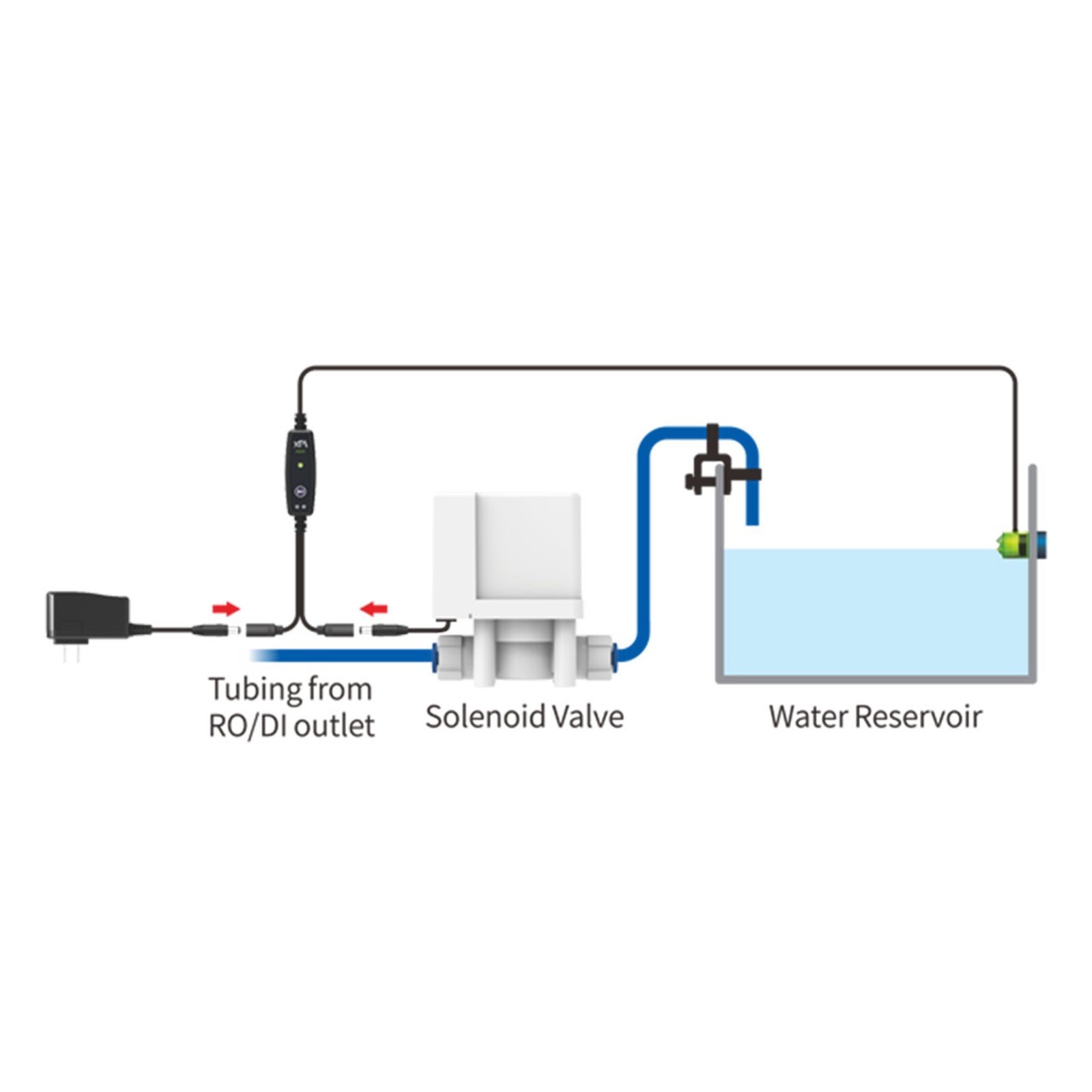 Prevent floods by adding the super-easy-to-install Flood Guardian to your RO or RO/DI System. Never worry about forgetting to turn off your RO/DI system or overfilling your reservoir again! Simply mount the magnetically-mounted sensor to any reservoir/bucket/jug and the water will stop once the reservoir is filled. No drilling is required and there is no unreliable float valve to fail. Our proprietary dual-optical sensor provides unparallel security. Additionally, there is no frustrating pressure solenoid to install: the electronic solenoid kit installs in seconds.