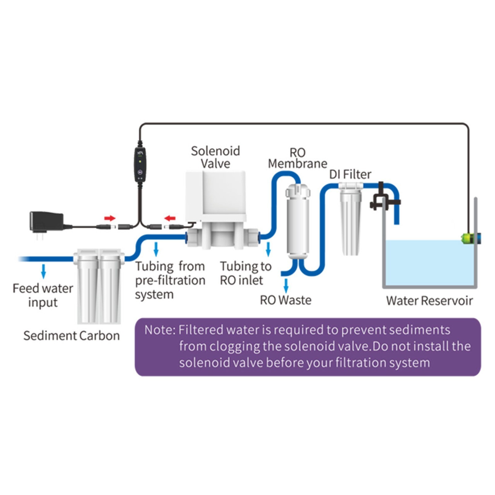 Optionally, use the RO/DI Flood Guardian with a 7-day timer to automatically refill your ATO reservoir. Simply program the timer to turn on once every 1-7 days and the system will refill your reservoir based on your timer settings. No more TDS Creep!