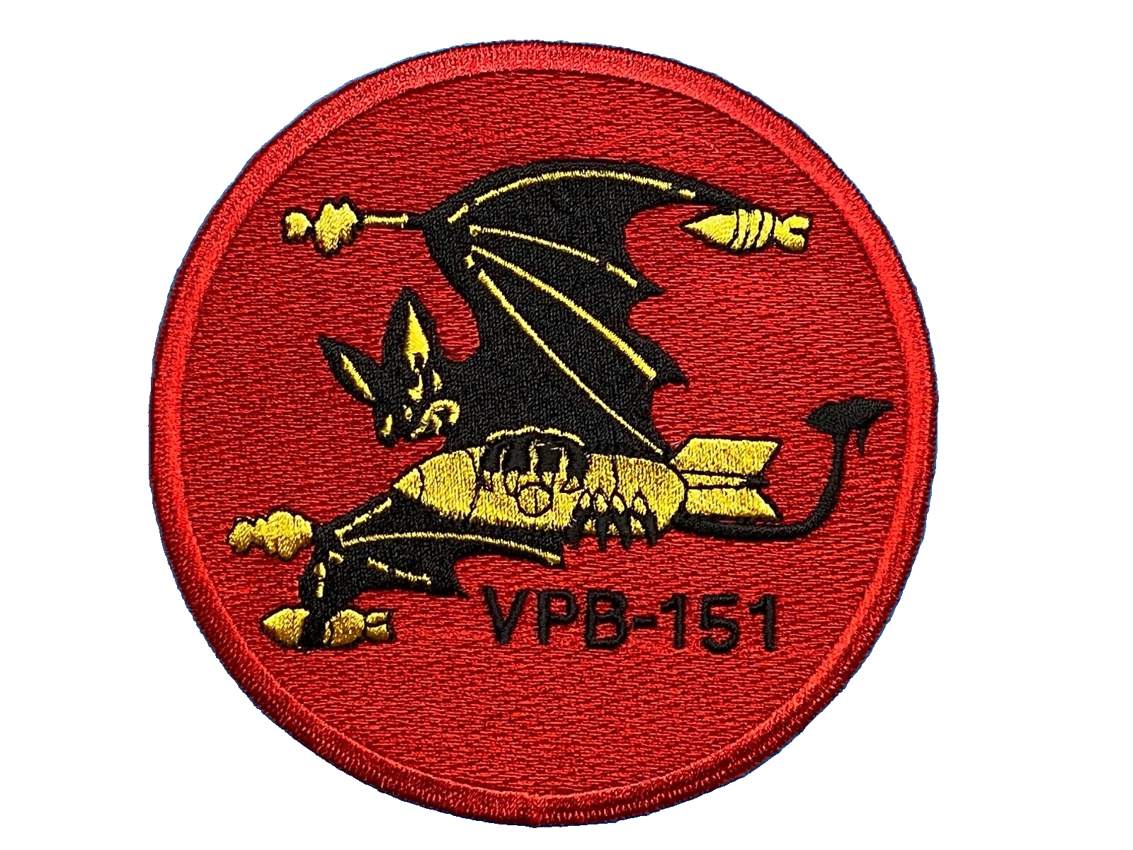 This is a patch from the United States Navy's VPB-151 Patrol Bombing Squadron. It features a unique design that would make it a perfect addition to any militaria collection. The patch was made in the United States and is a testament to the dedication of our servicemen and women.