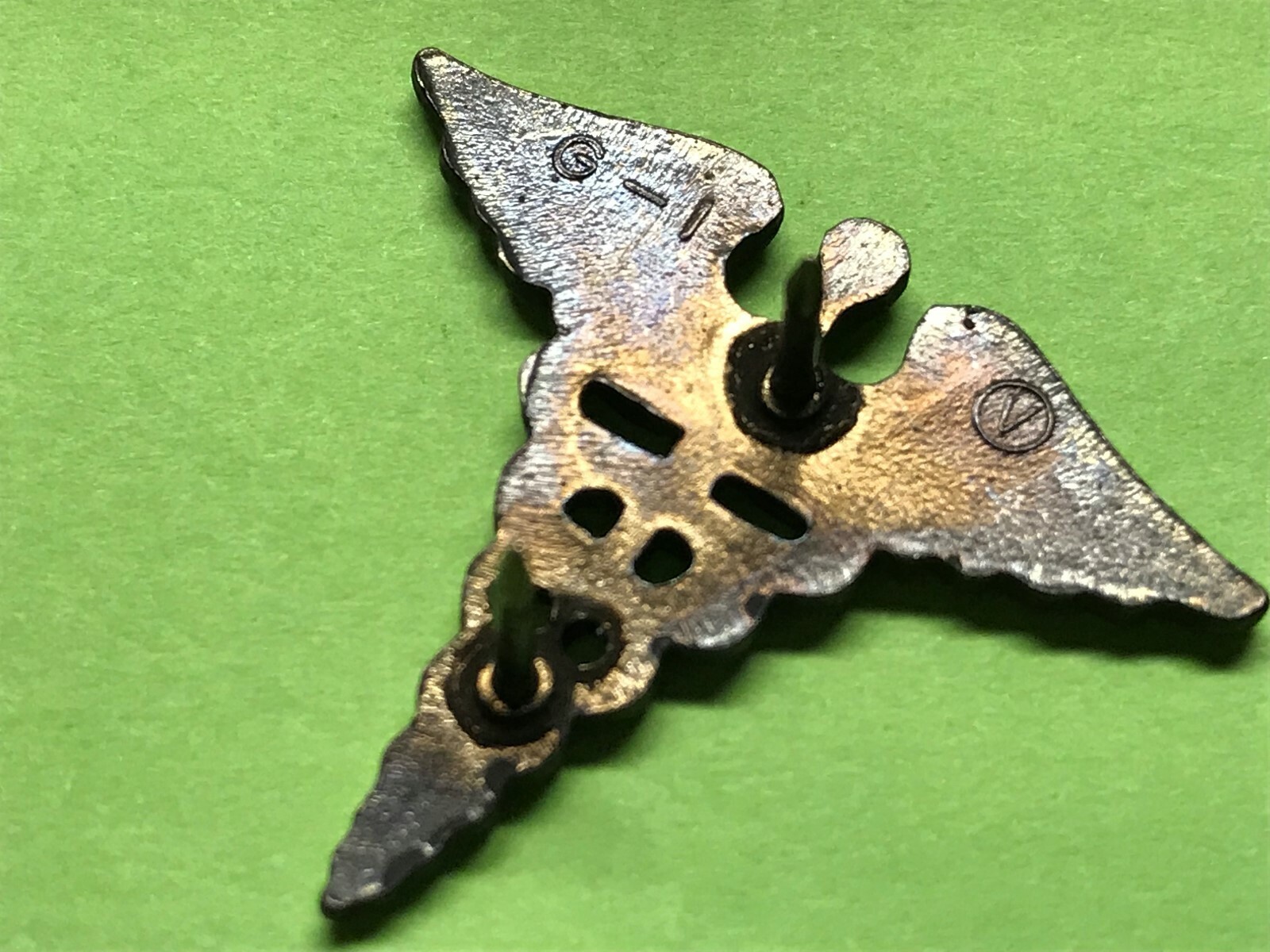 This grouping consists of a matched set of subdued Medical Department, Collar devices, Hallmarked "G-I, CIRCLED V"
