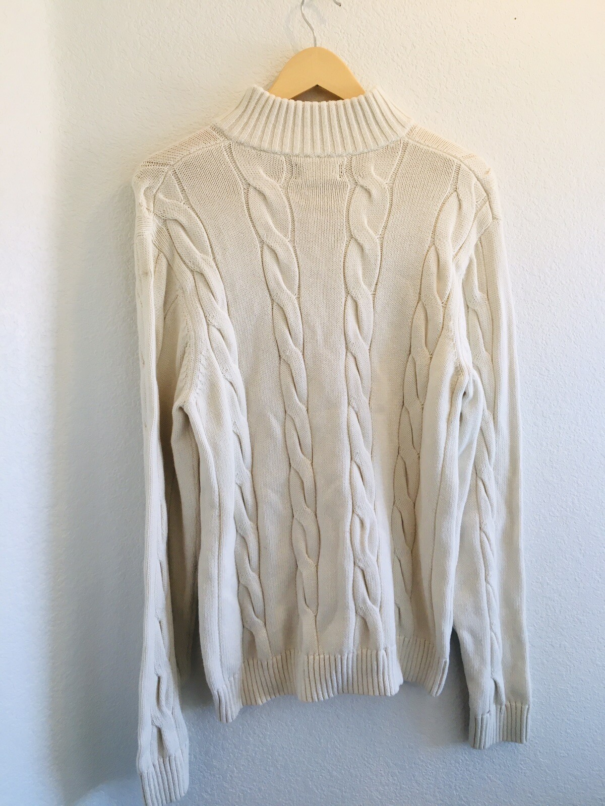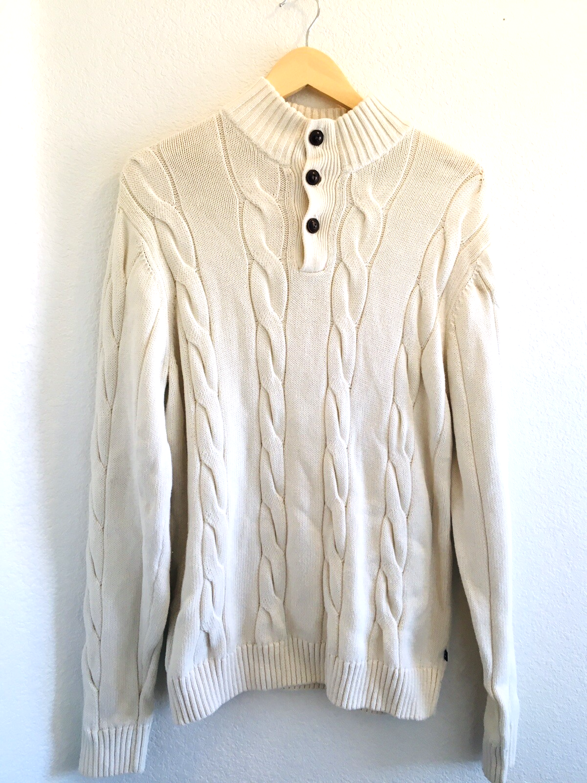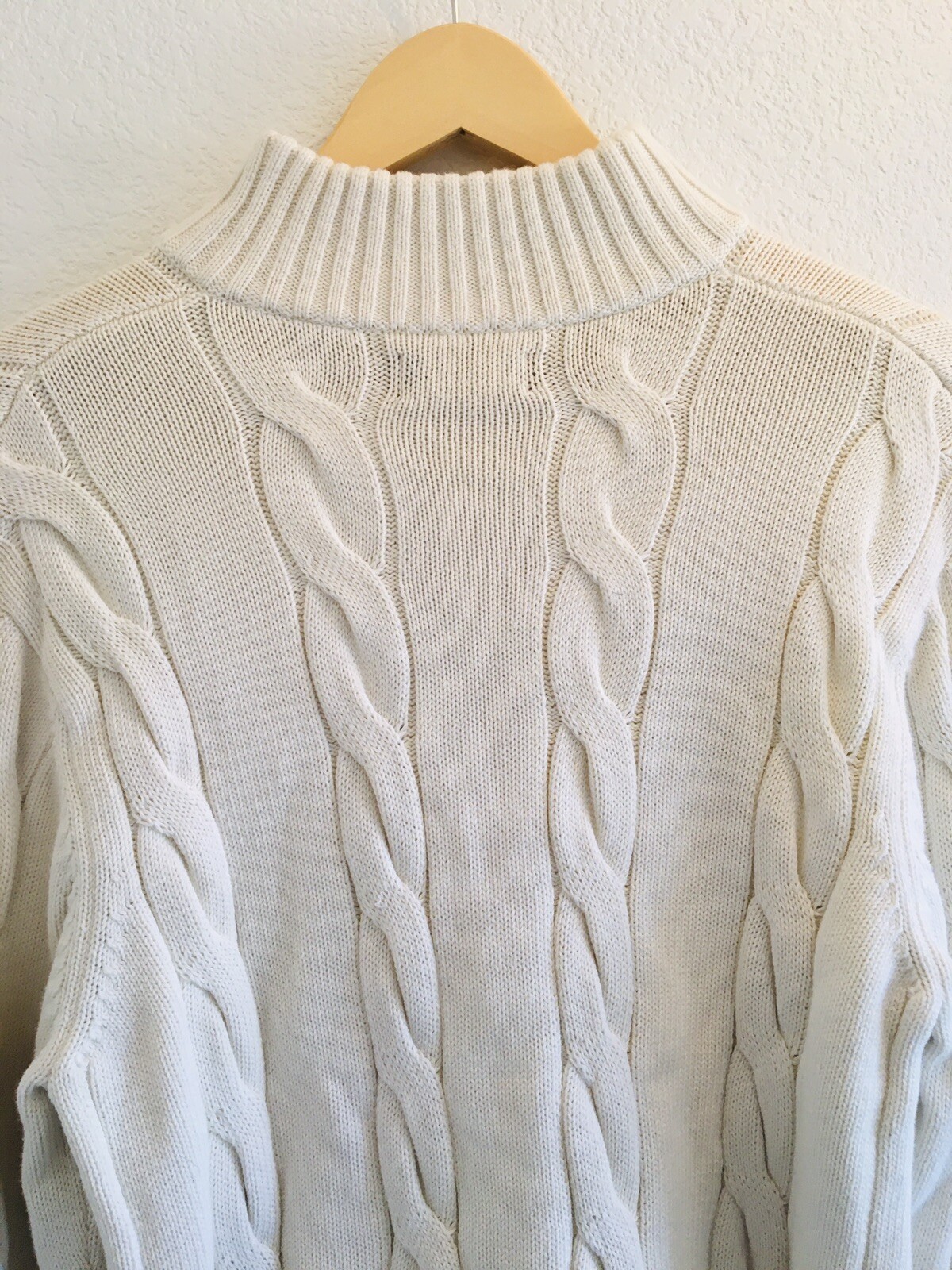 Chaps Sweater Pullover Men's Large Mock Neck Button Cable Knit Thick Off White