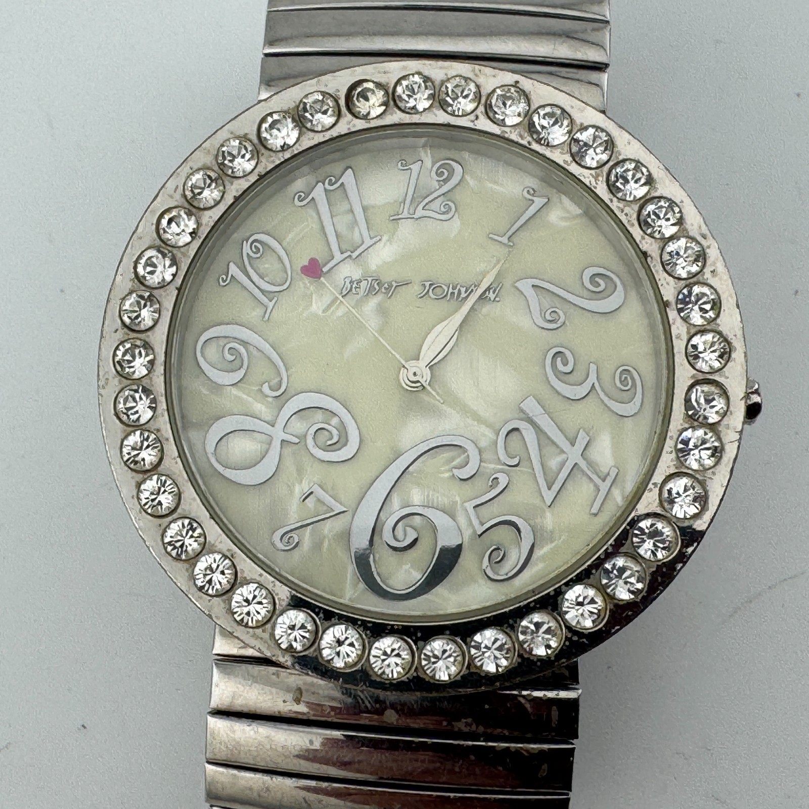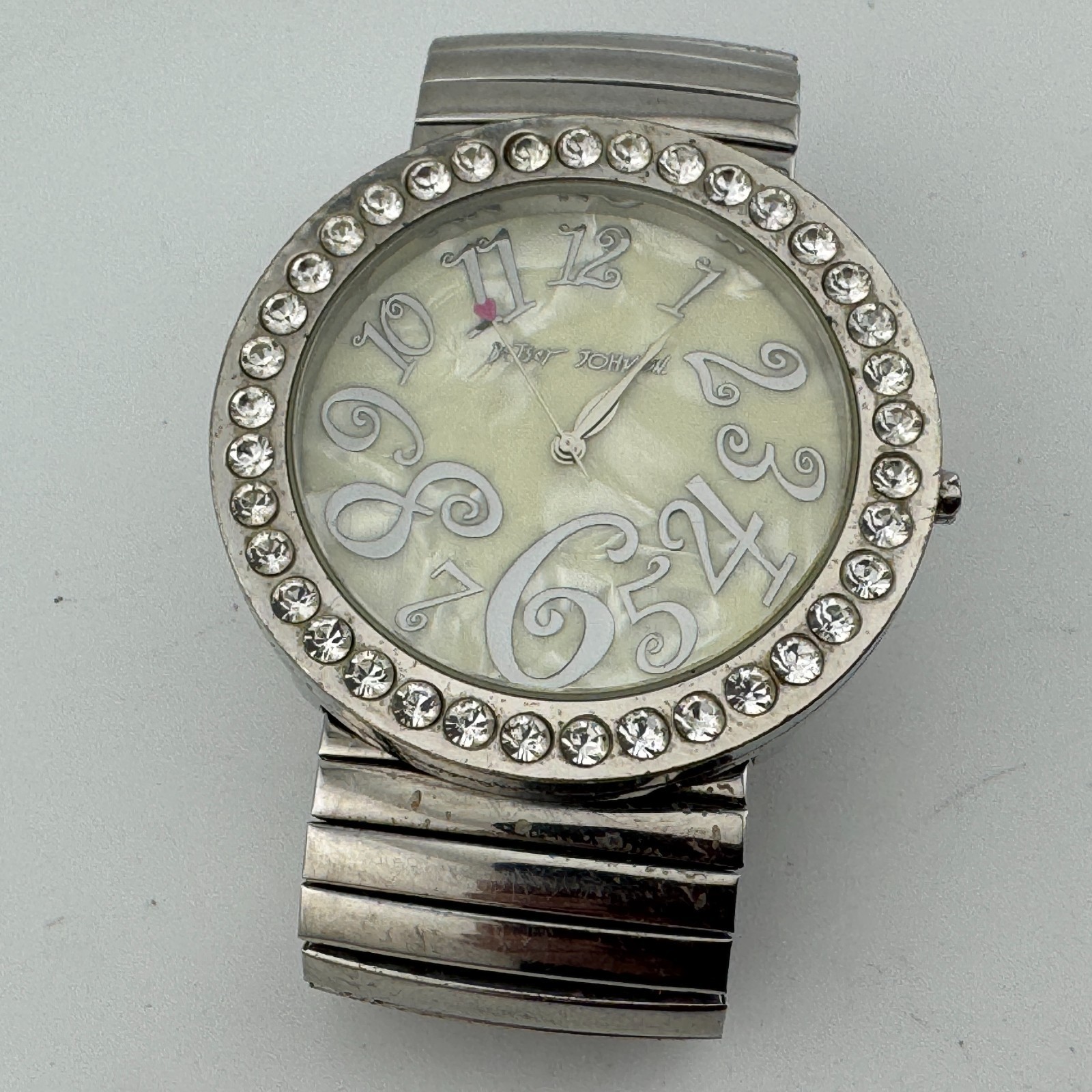 Betsey Johnson Quartz Watch Unisex Large 48mm Silver Rhinestone New Battery
