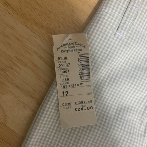 Elevate your summer wardrobe with these American Eagle Outfitters short shorts in a stylish green and white color combination. These comfortable shorts feature a button and zip closure, as well as pockets for added convenience. Perfect for any occasion, whether it be travel, activewear, casual, formal, workwear, or business, these shorts will quickly become a go-to in your wardrobe. Made from high-quality cotton material, these shorts are designed for regular fit and are available in size 12 with a waist size of 12.