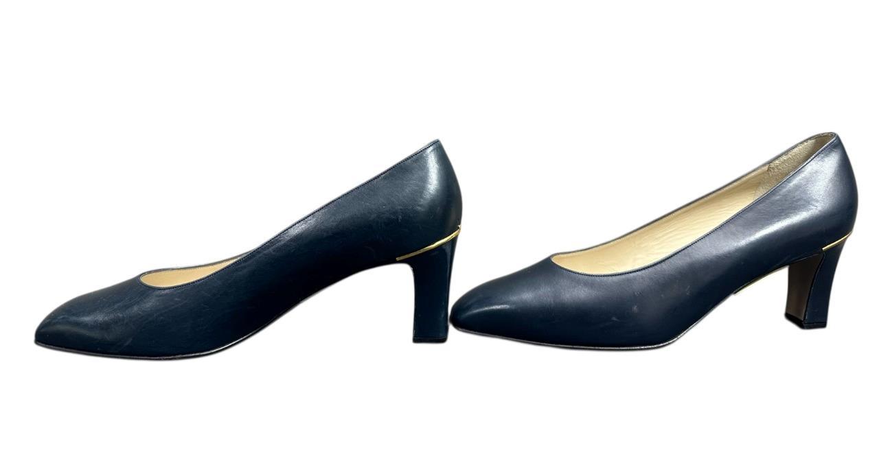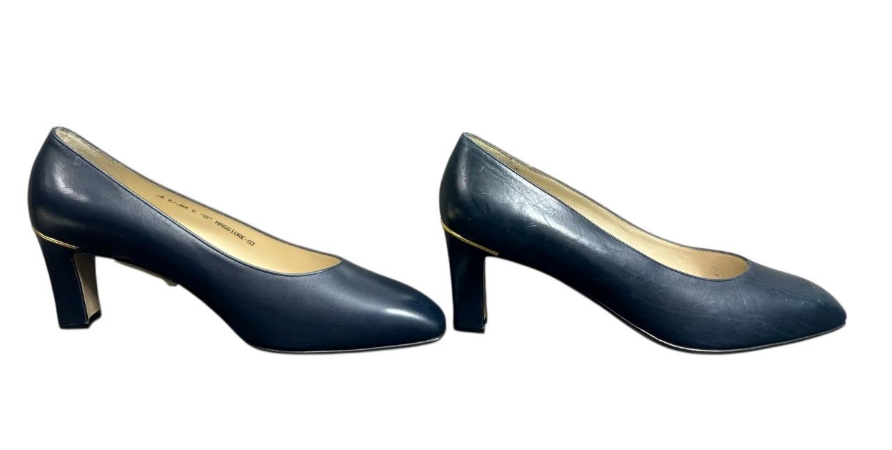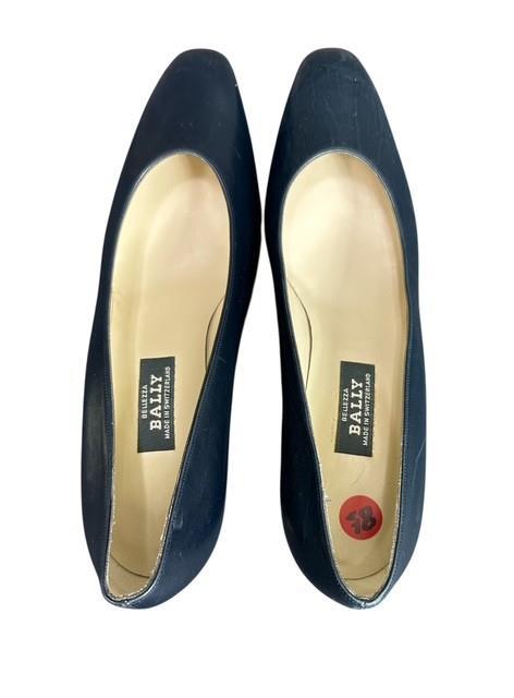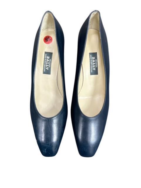 BALLY Maggiore Blue Leather Slip On Pump Heel Shoes Size 8.5 C Made Switzerland