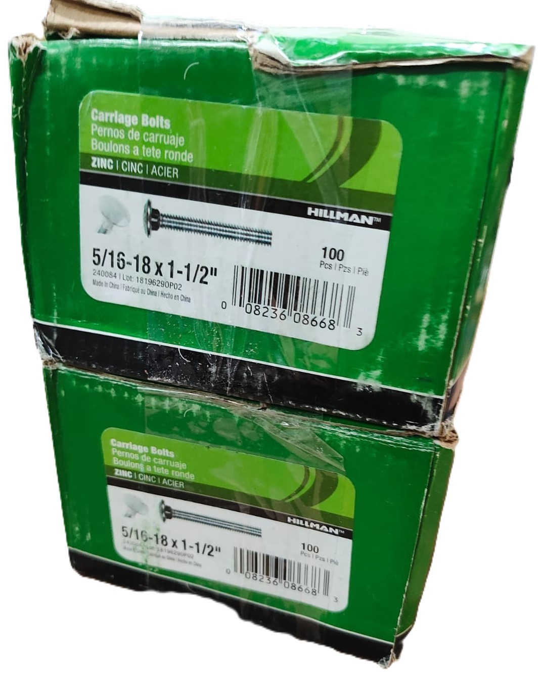 Carriage Bolt 5/16" x 1-1/2"L Steel Zinc-Plated 100-ct - Hillman 240084 (2-PACK)