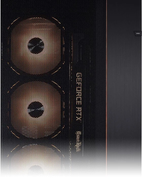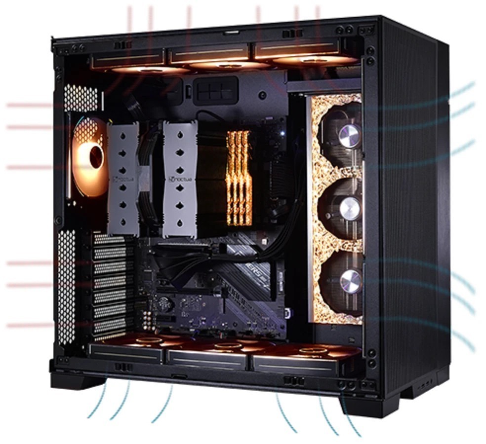 The fine mesh panel replaces the front glass panel to provide additional air intake with the support of fans.