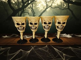 Lot Of 4 Vintage Halloween Skeleton Skull Molded Plastic Goblet Cup