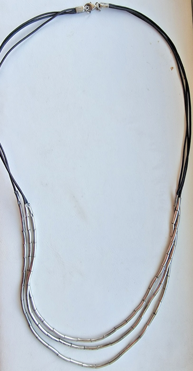 The Silpada Vintage 925 Sterling Silver Flash N2196 30 Black Brown Leather Necklace is a stylish and elegant piece of fine jewelry. Made with high-quality sterling silver, this necklace features a unique black and brown leather cord intertwined with a chain design. The lobster closure ensures secure wear, while the signature Silpada branding adds a touch of authenticity. Perfect for those who appreciate beauty and artisan craftsmanship, this necklace is a timeless accessory that can elevate any outfit with its classic silver and leather combination.
