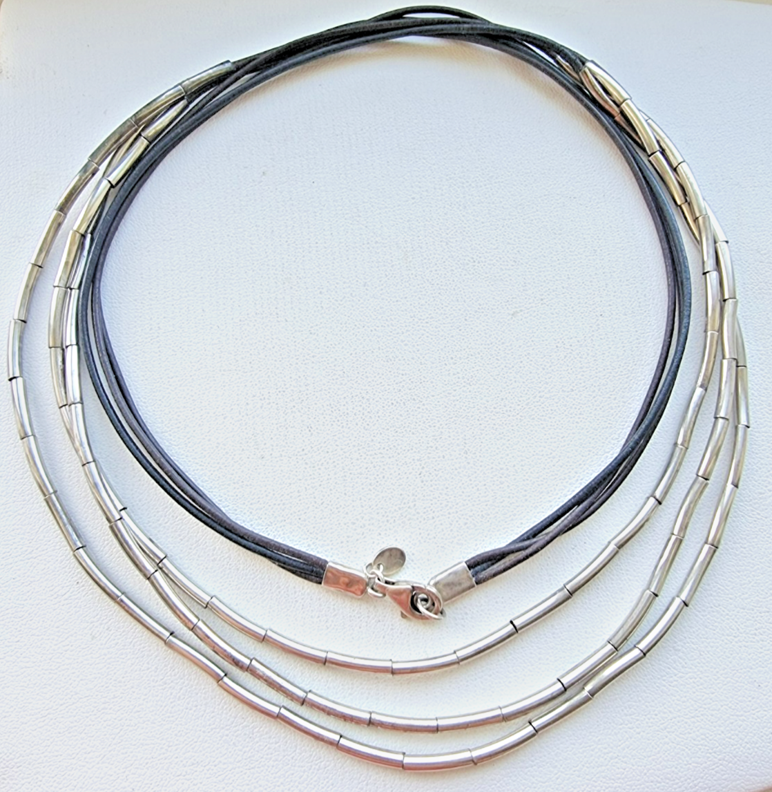 SILPADA VINTAGE 925 STERLING SILVER FLASH N2196 30 BLACK BROWN LEATHER NECKLACE