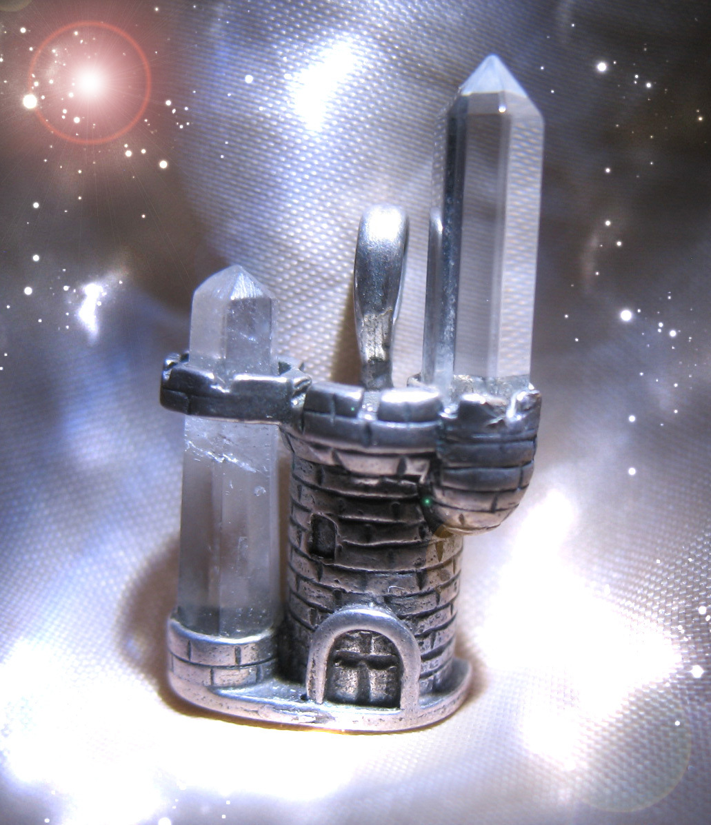 Within the granite halls of the Upper Sanctum- where flame does not flicker and silence is sacred- the Scholars of High Magick perform the Rite of the Fortress Star, an ancient, multi-phase consecration known only to the inner lineage. The pendant- a sterling crystal castle, finely wrought and glimmering with reflective facets- is placed atop a slab of selenite etched with planetary glyphs and sigils of divine enclosure.