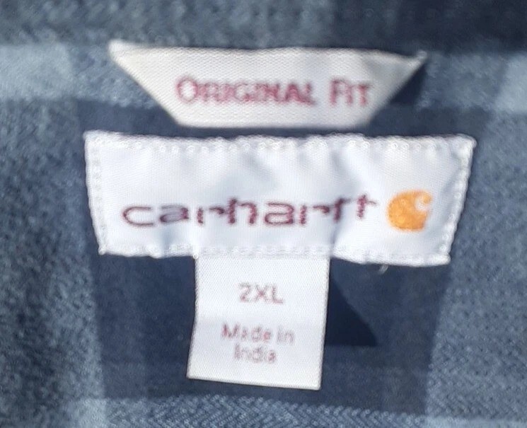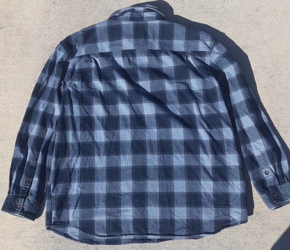 Carhartt Original Fit Button Front Work Blue Flannel Plaid Shirt Men 2XL. E1