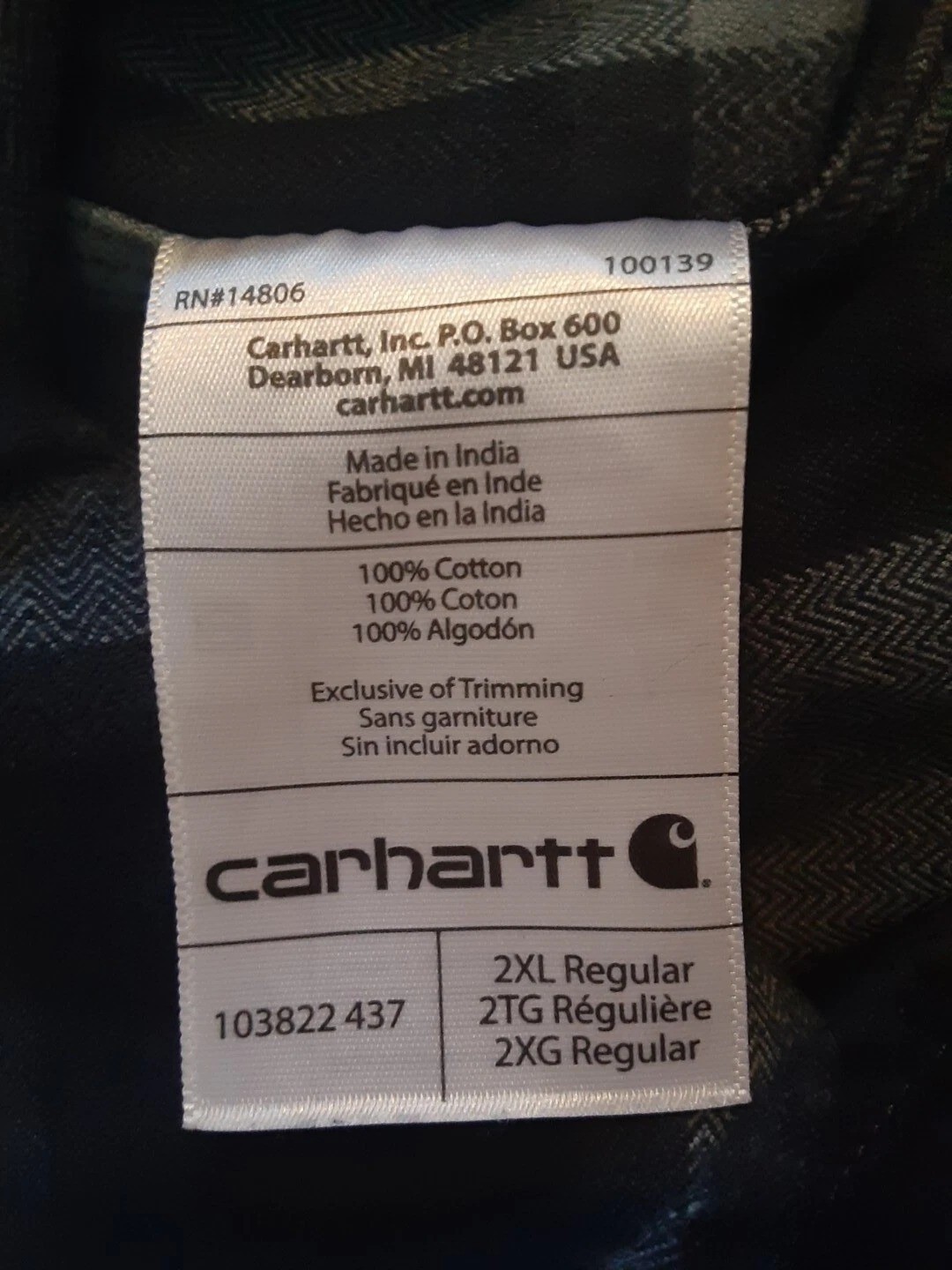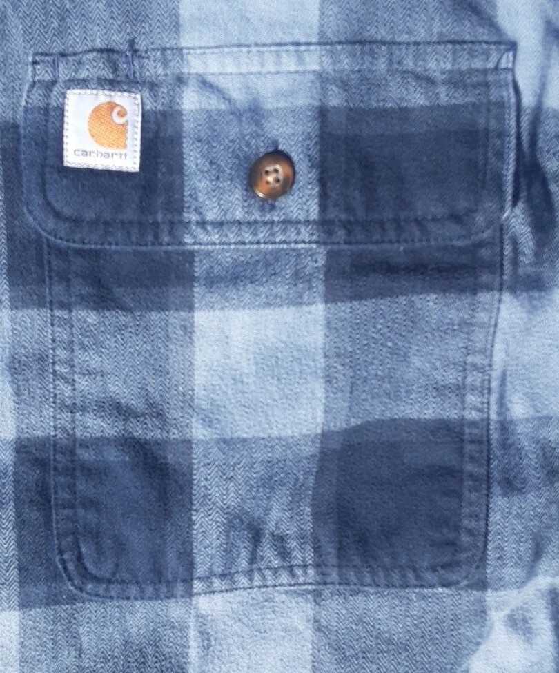 Carhartt Original Fit Button Front Work Blue Flannel Plaid Shirt Men 2XL