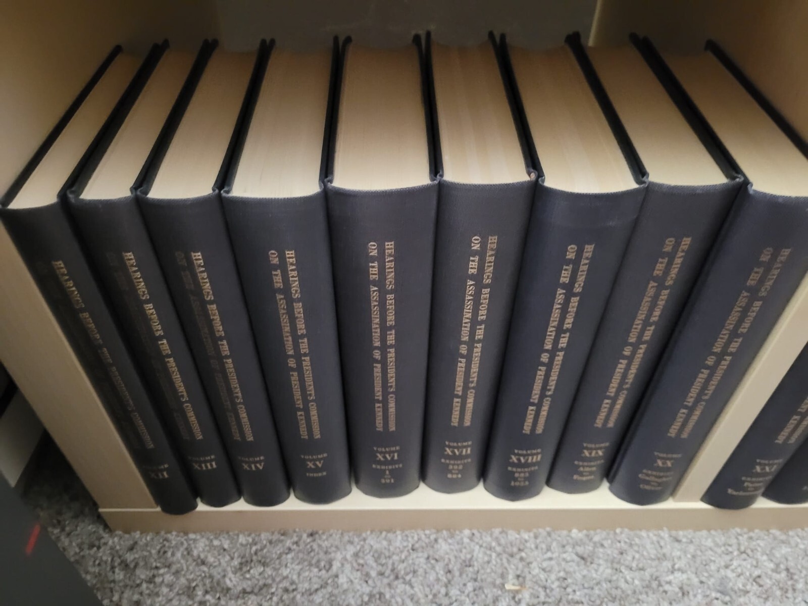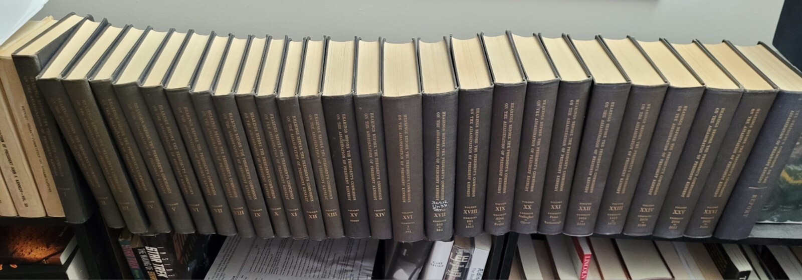 For sale is the complete Warren Commission Hearings Report (27 Volumes) on the assassination of President Kennedy. According to the National Archives, 5,600 sets of the Warren Commission Hearings were published and purchased in 1964. I own four of those sets. All four of the sets are in very good condition.