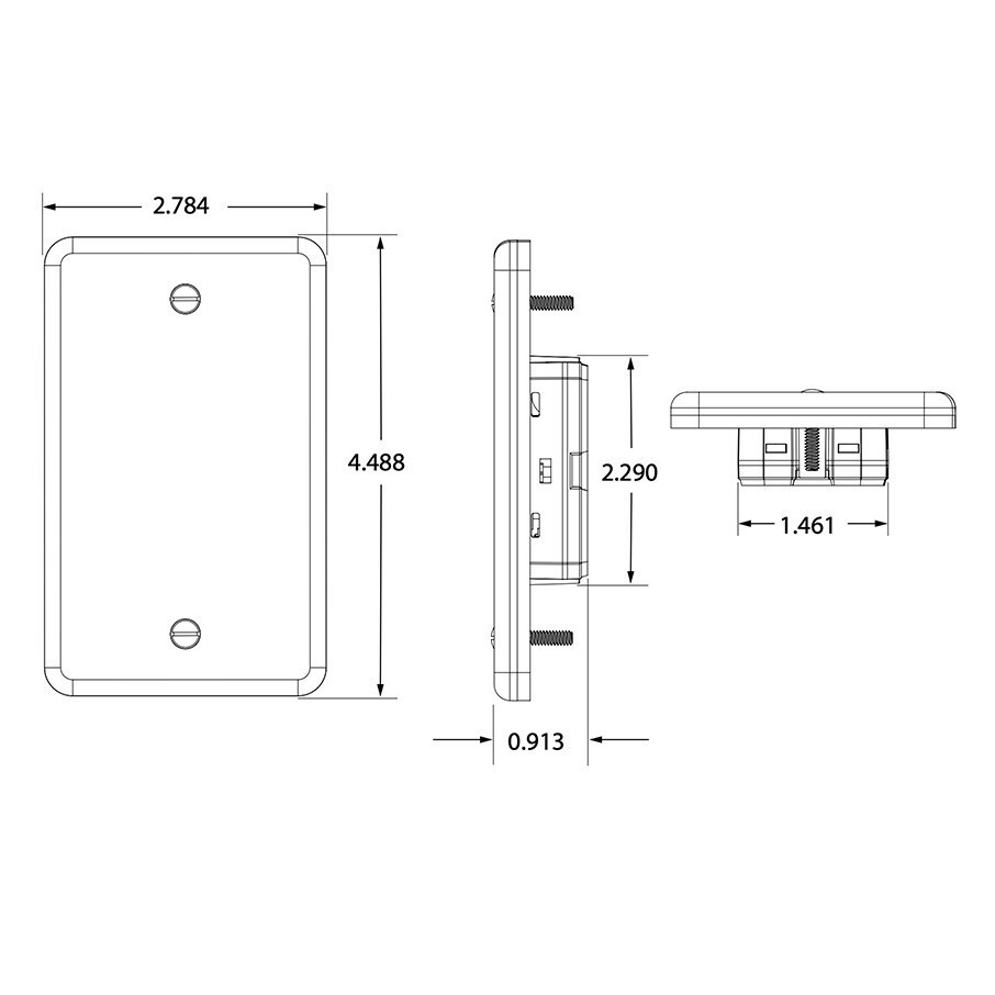 Single-Gang: 4-1/4 inches (H) X 2-3/4 inches (W) X 1/4 inch (T)