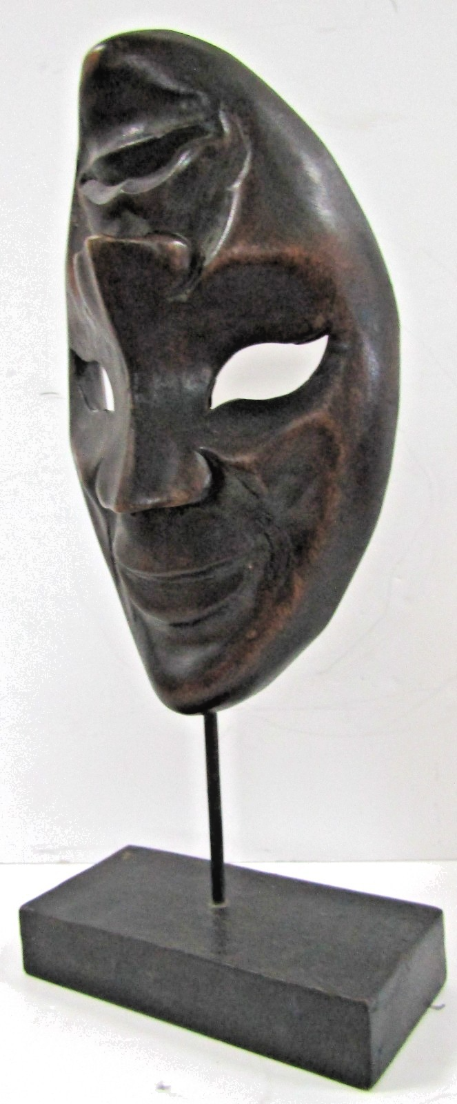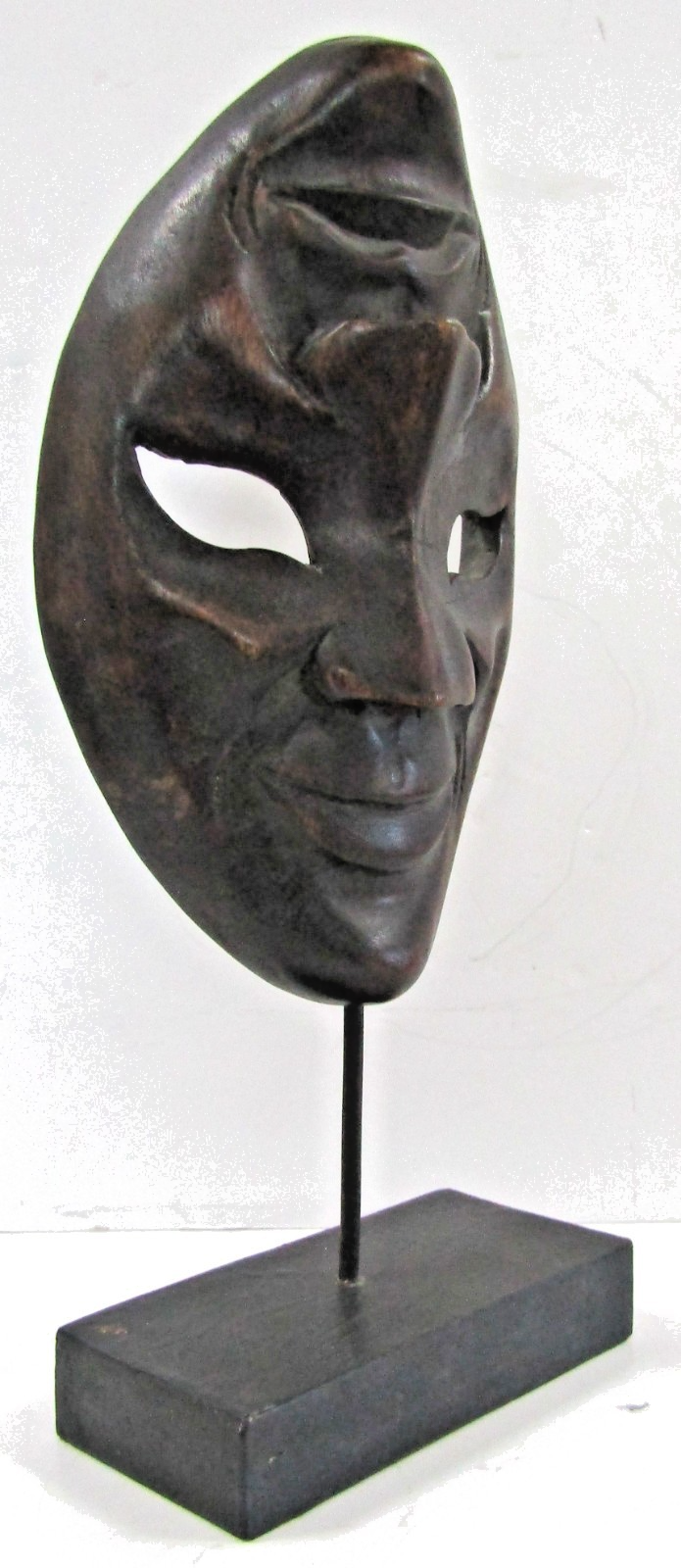 Vintage Carved Black Wooden Comedy/Tragedy Mask Wall or Stand Sculpture