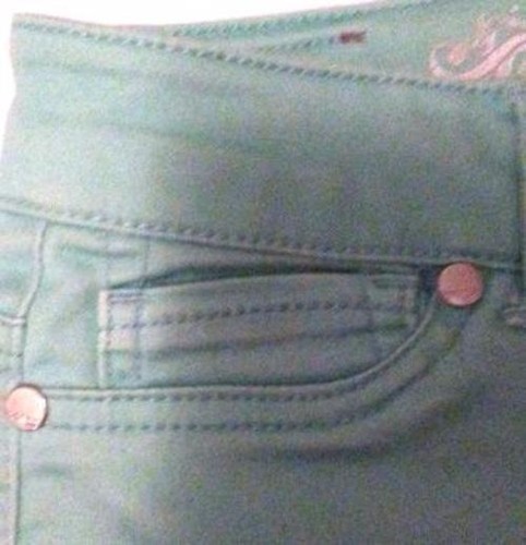 This pre owned EXPRESS Women's Light Green Denim Skinny Jeans is in excellent pre-owned condition with no signs of damage of any kind. Made in China. Size 6. It is 69% cotton, 29% polyester and 2% spandex.