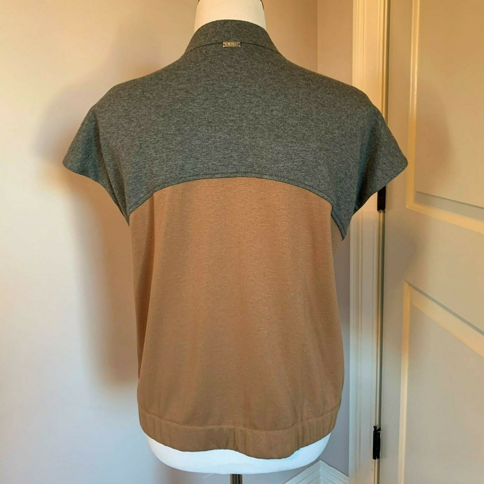 This new without tag VPL beige and gray sleeveless bomber jacket is in excellent condition as it has never been worn. It features: