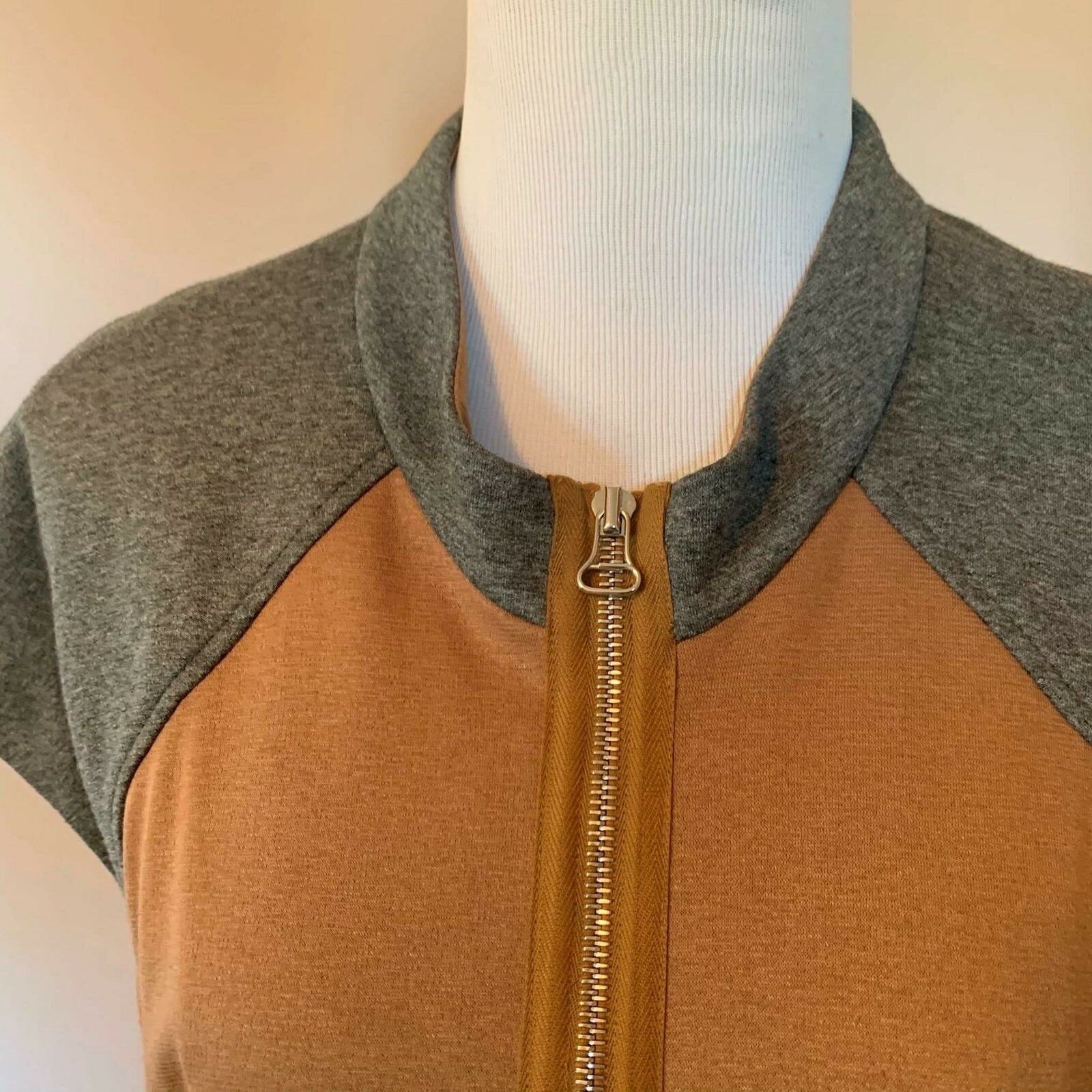 NWOT VPL Beige and Gray Sleeveless Bomber Jacket SZ M