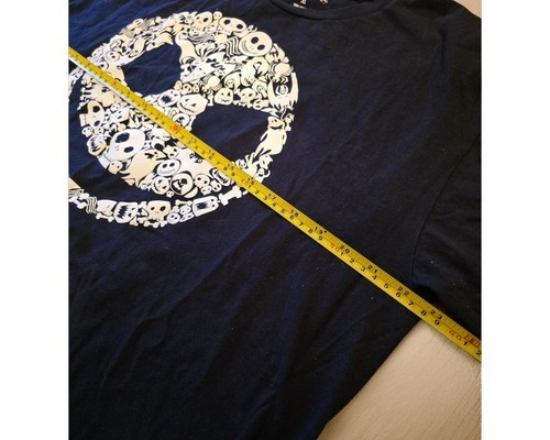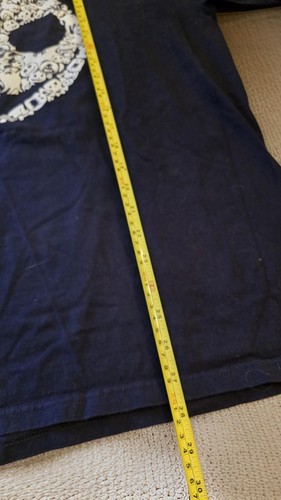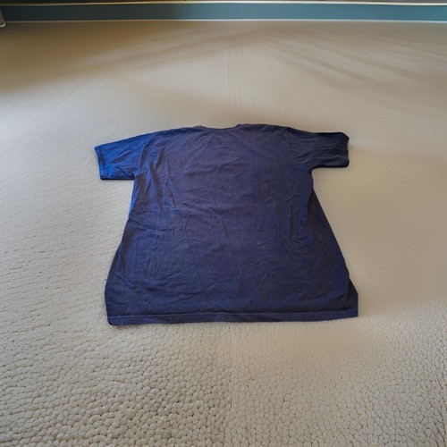There are no rips, tears or stains. Due to lighting, tshirt looks blue in pictures. It is actually a black tshirt.