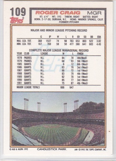 M) 1992 Topps Baseball Trading Card - Roger and 50 similar items