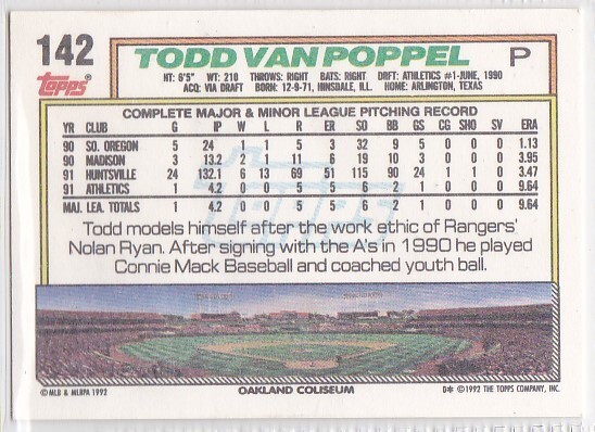 M) 1992 Topps Baseball Trading Card - Todd Van Poppel #142