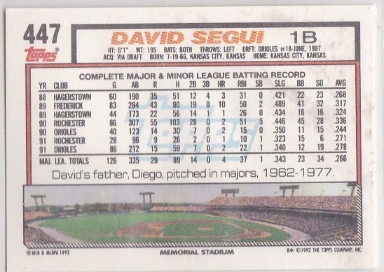 M) 1992 Topps Baseball Trading Card - David Segui #447