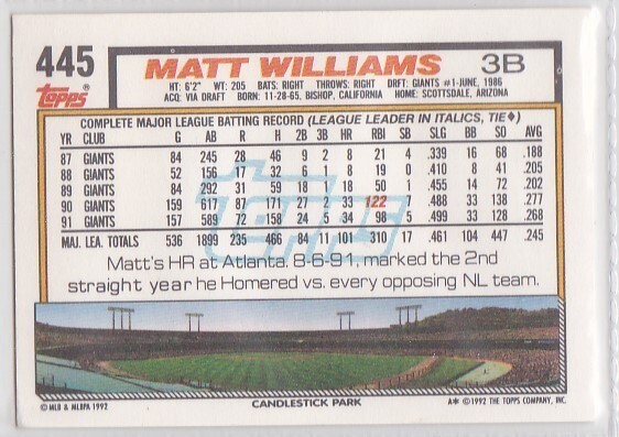 M) 1992 Topps Baseball Trading Card - Matt Williams #445