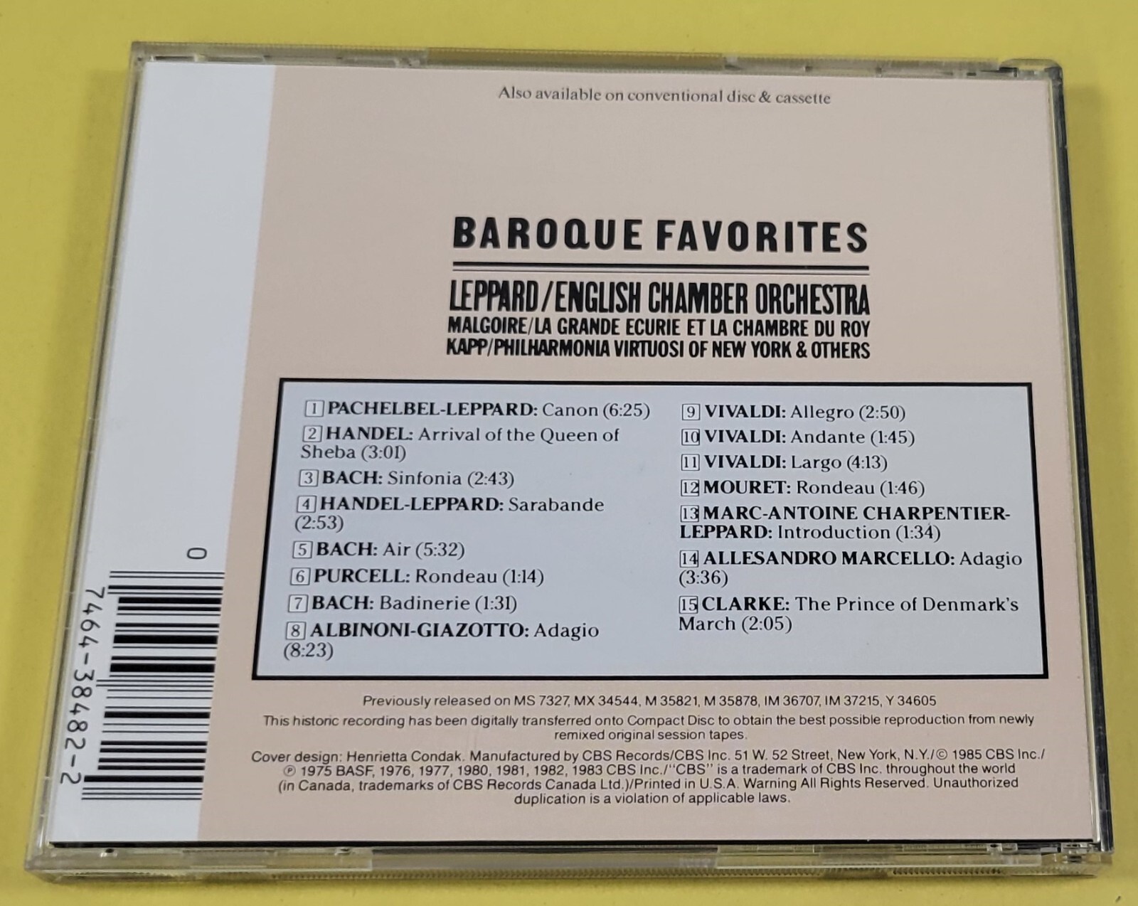O) Canon & Other Baroque Favorites by Raymond Leppard (CD, 1990 CBS)