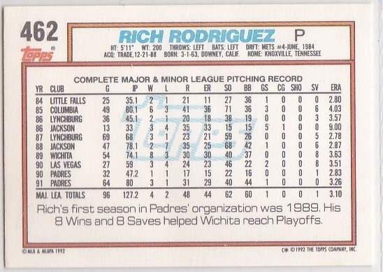 M) 1992 Topps Baseball Trading Card - Rich Rodriguez #462