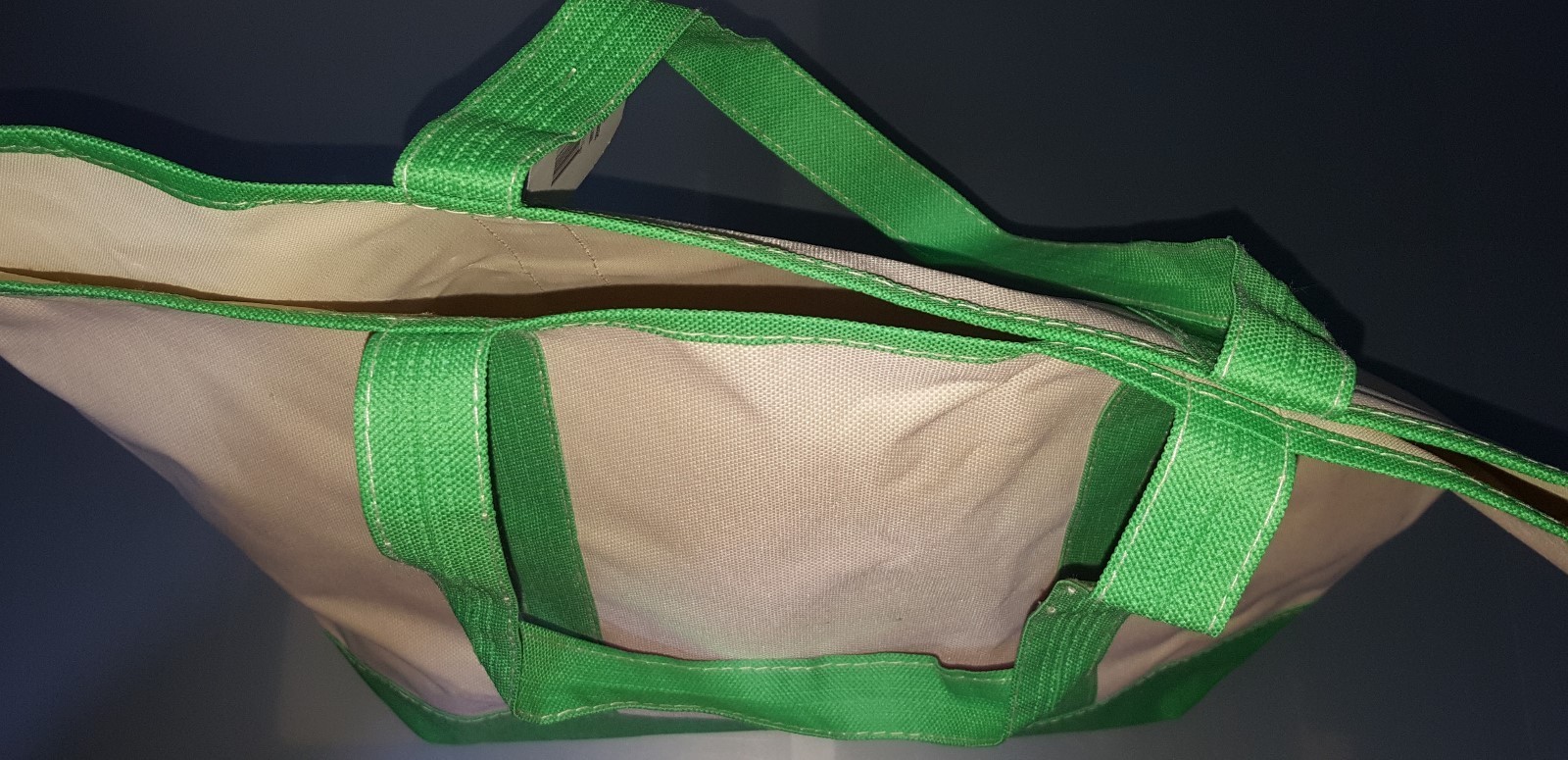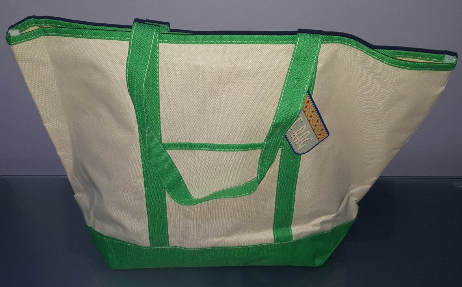 AA) Greenbrier International Inc Large Fabric Tote Bag Shopper Green and Cream