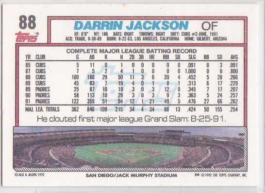 M) 1992 Topps Baseball Trading Card - Darrin Jackson #88
