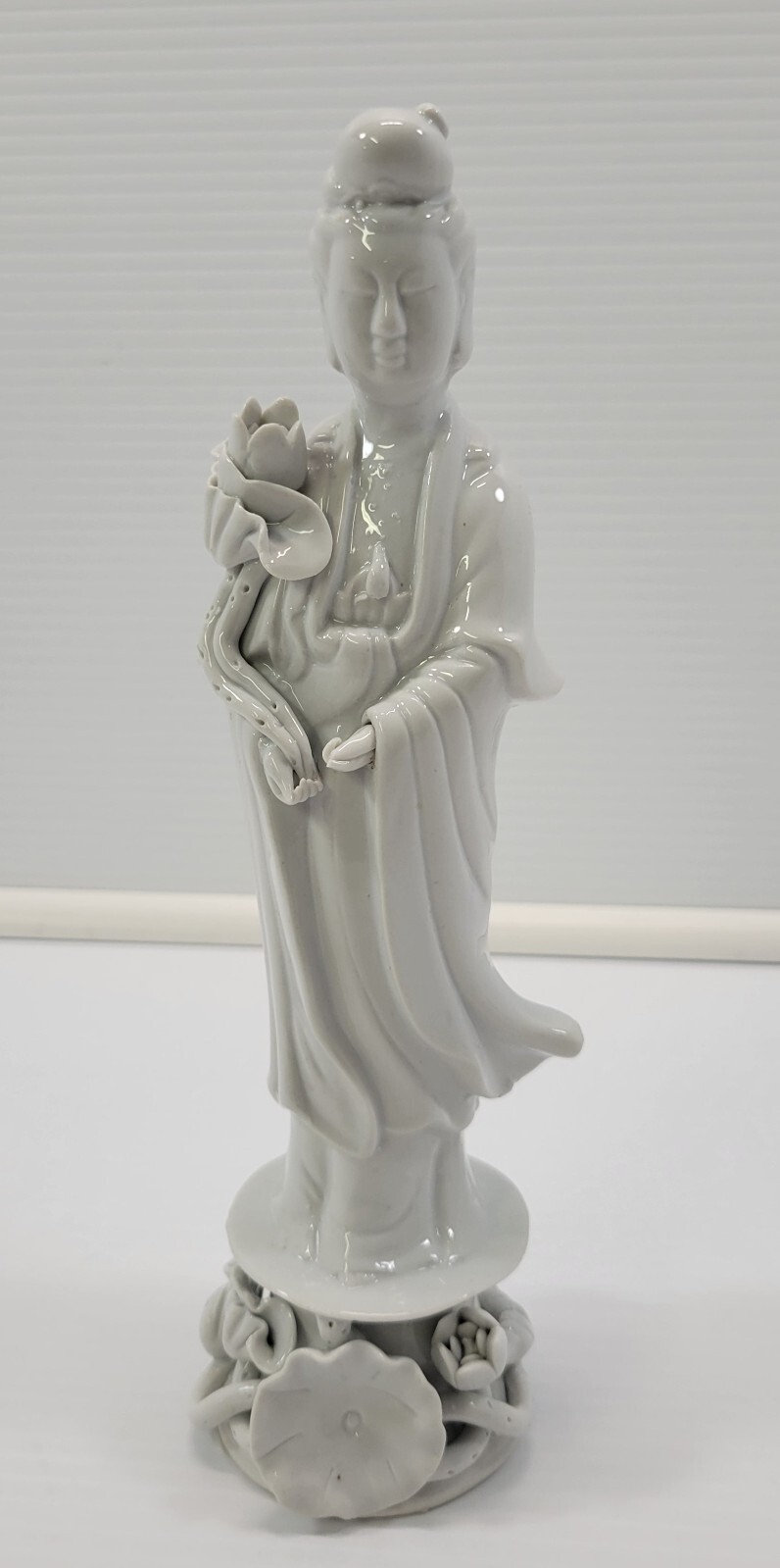 *B41) Vintage Blanc de Chine White Chinese Porcelain Guanyin Goddess Figurine