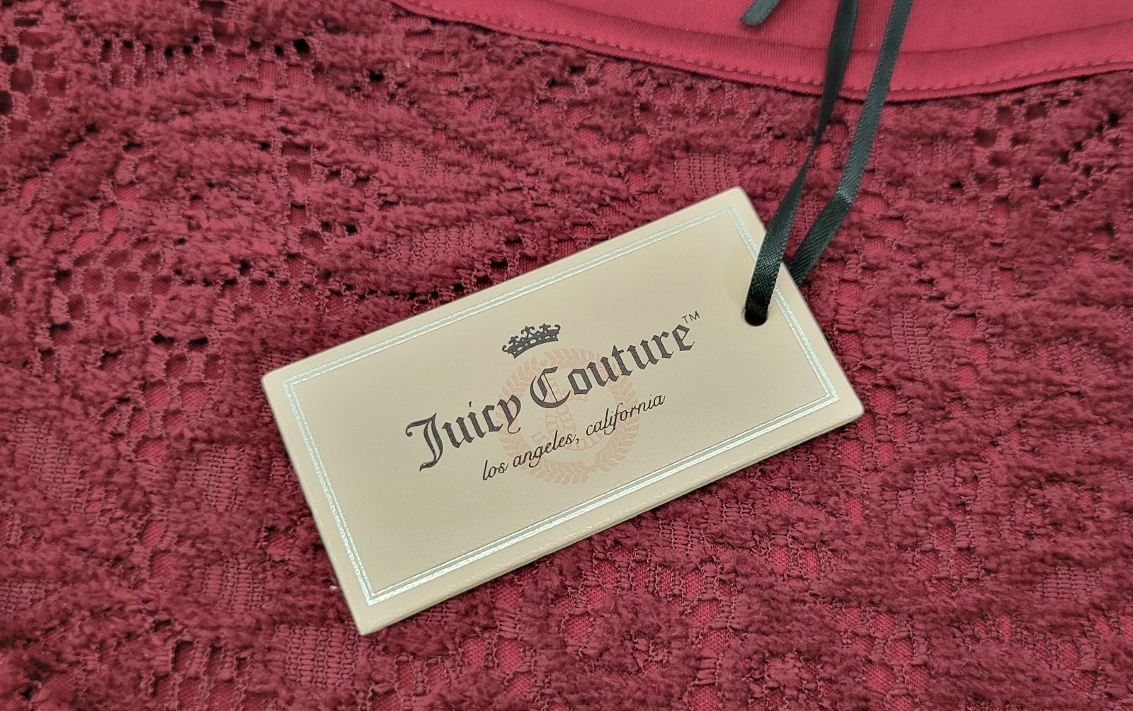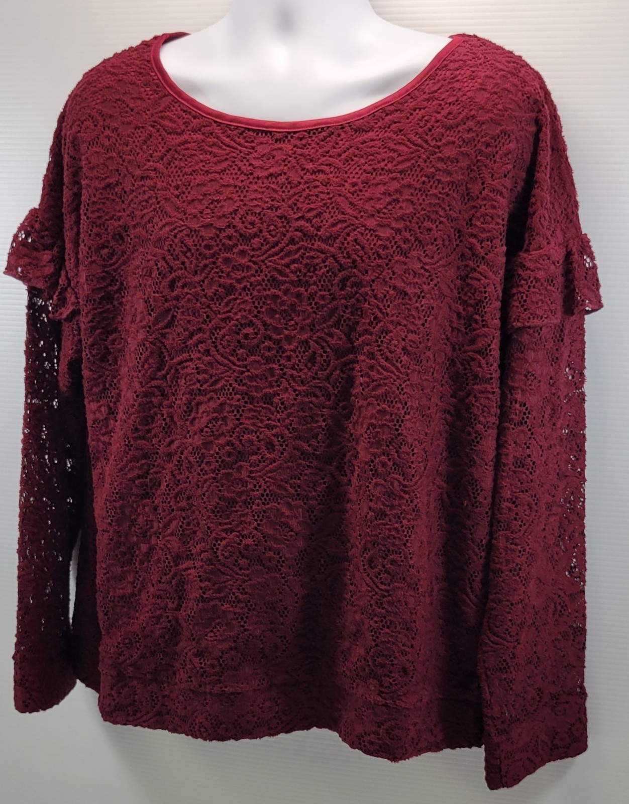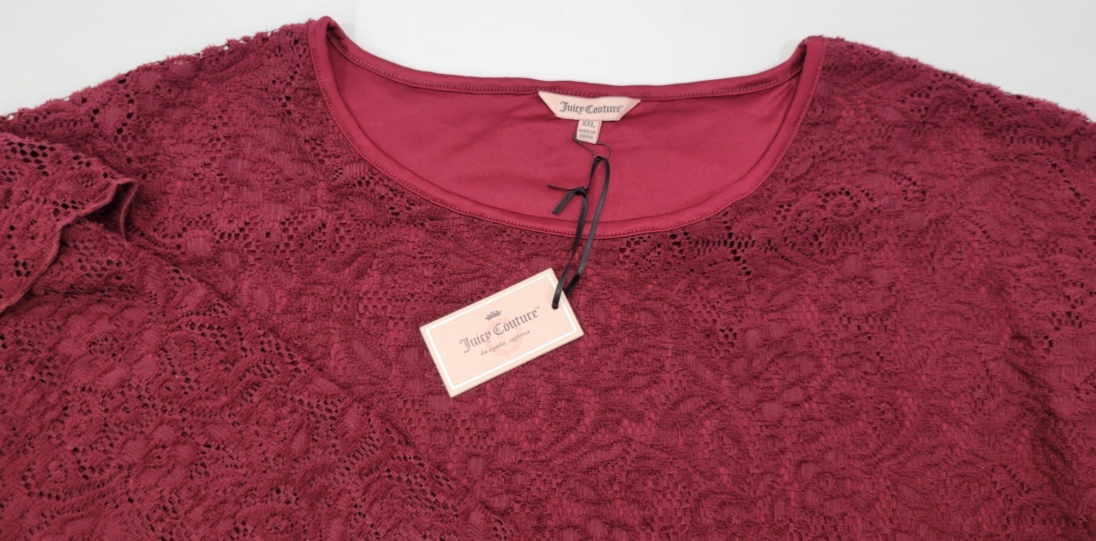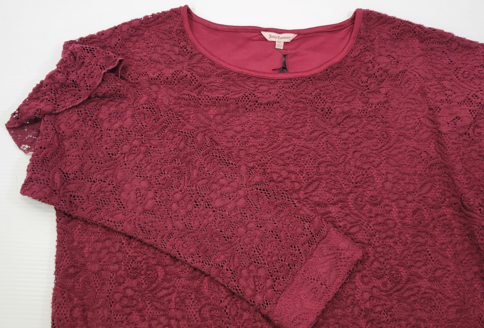 L3) Juicy Couture Woman Windsor Wine Ruffle Sleeve Sweatshirt XXL Sheer