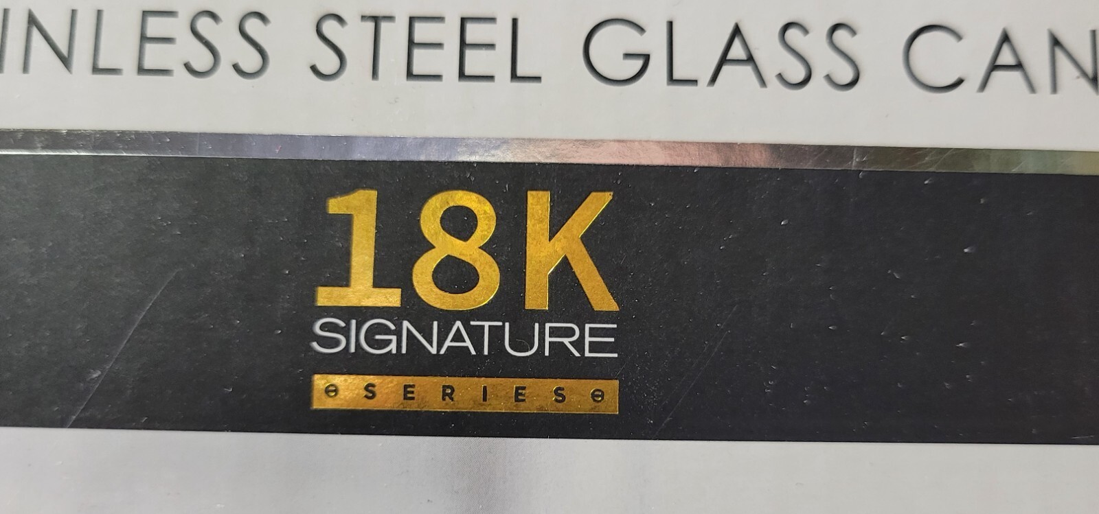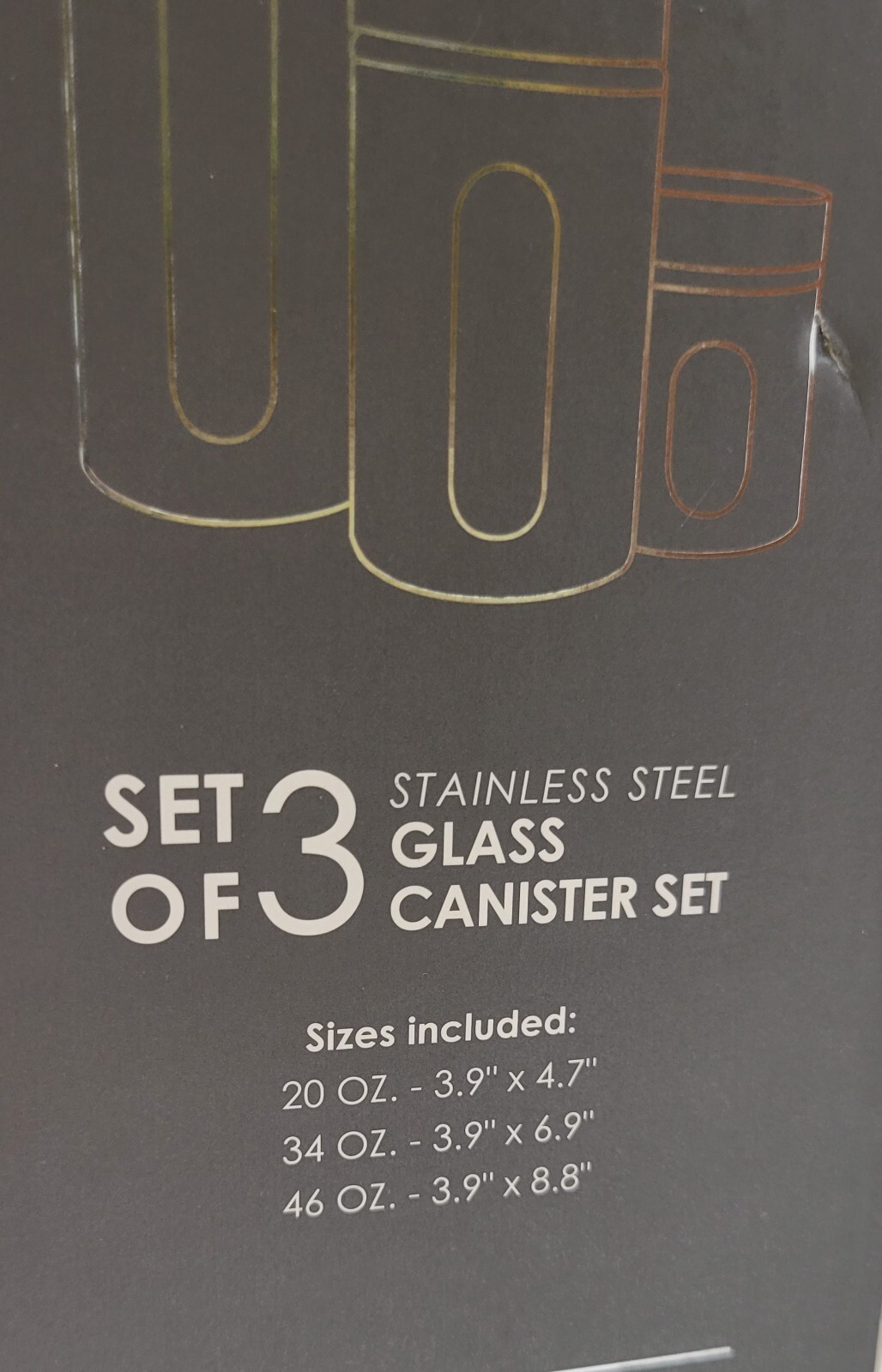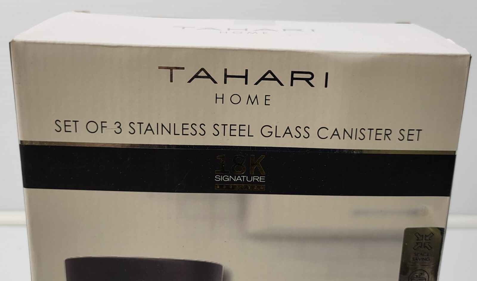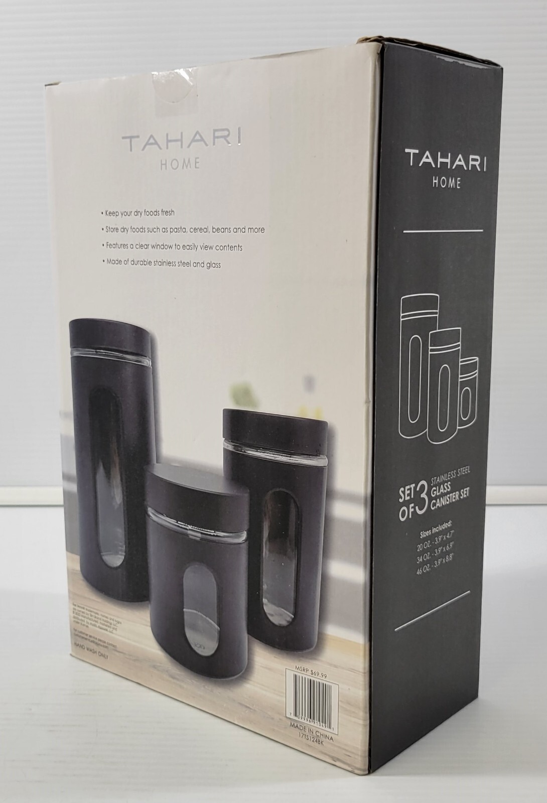 *L) Set 3 Tahari Home Signature Stainless Steel Glass Black Canister 17TS124BK