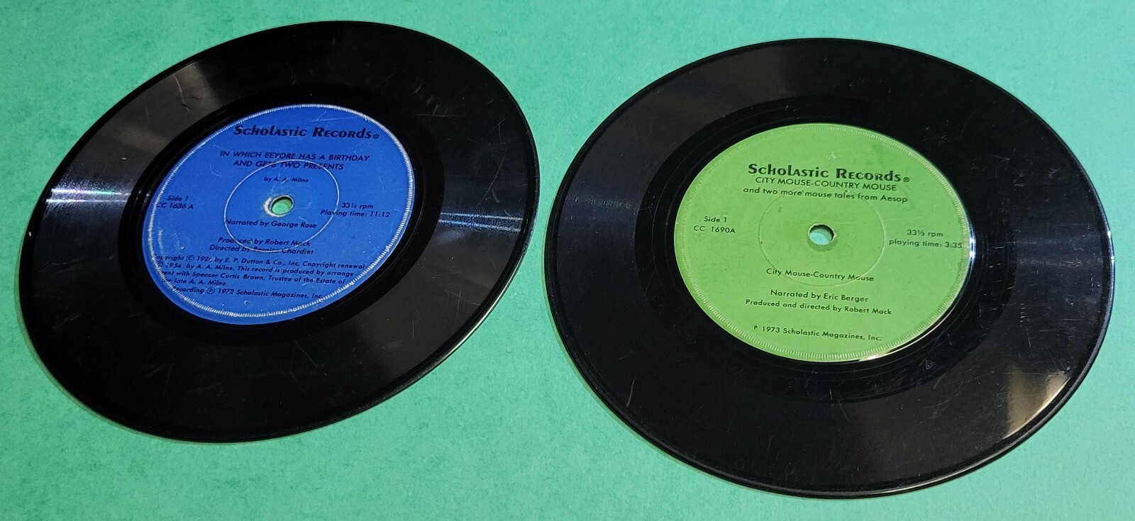 2 Scholastic Records - 7" Vinyl - City Country Mouse - Birthday 1972-73 - 33RPM