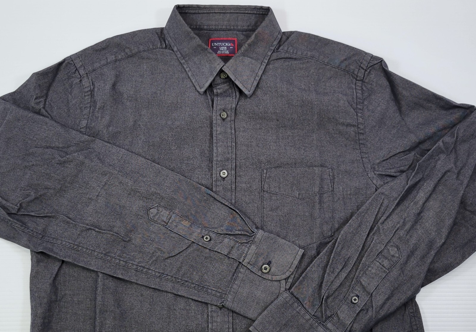 DA) UNTUCKit Men Charcoal Cotton Long Sleeve Button Down Slim Fit Shirt Large