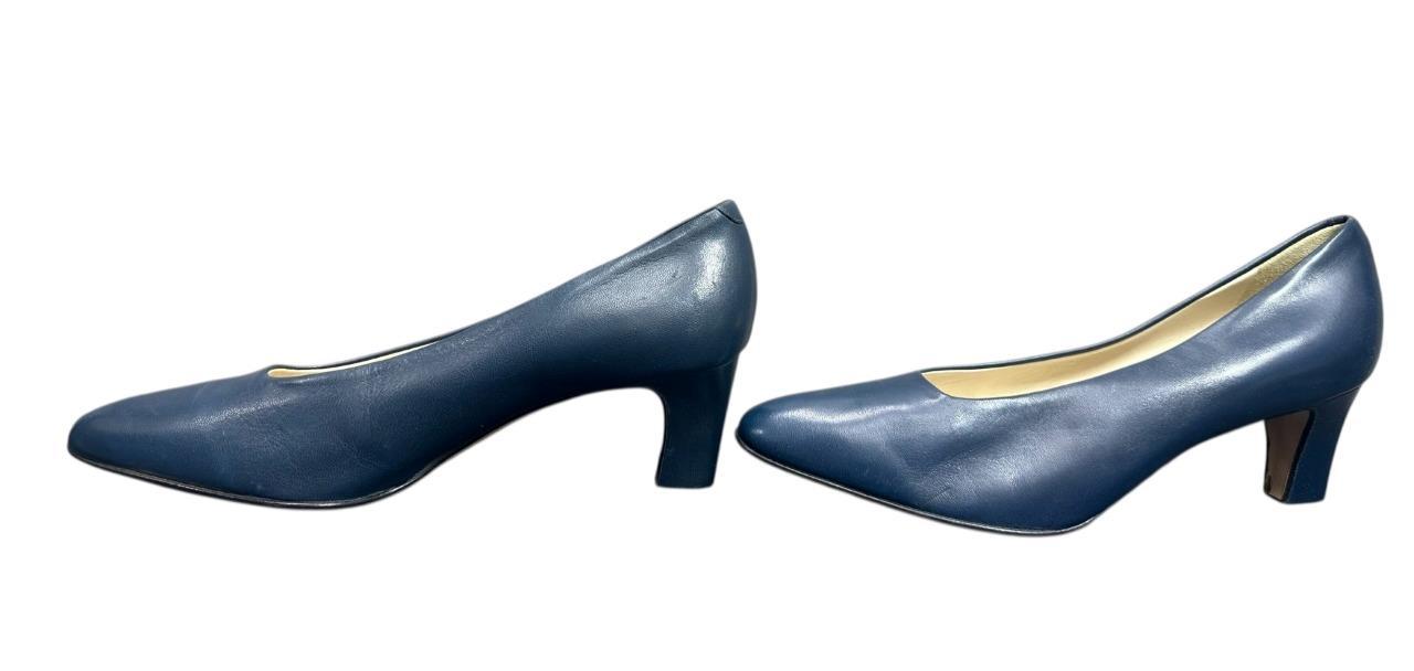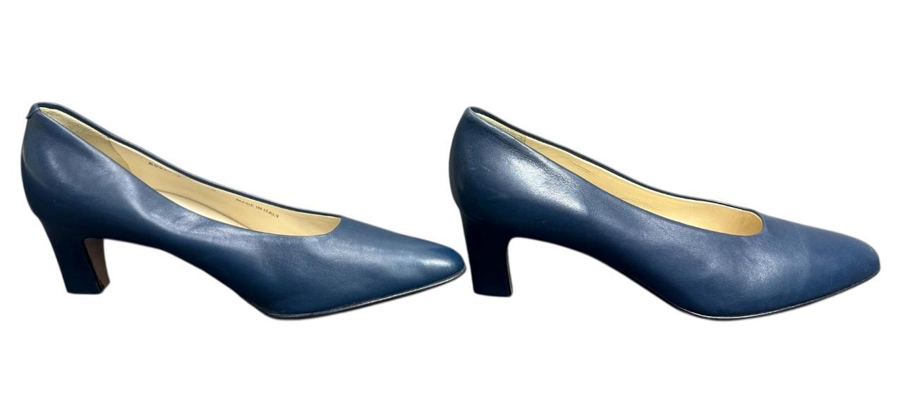 BALLY Rosebud Blue Leather Pump Heel Shoes Size 8.5 M Made in Italy