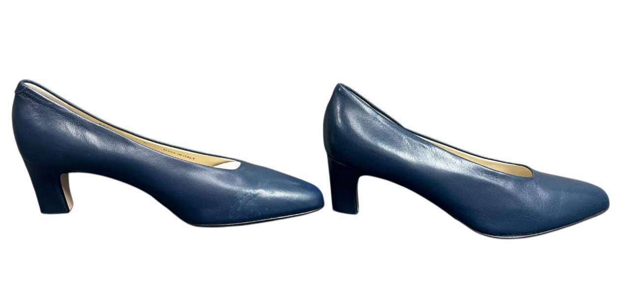 BALLY Rosebud Blue Leather Pump Heel Shoes Size 7 C Made in Italy