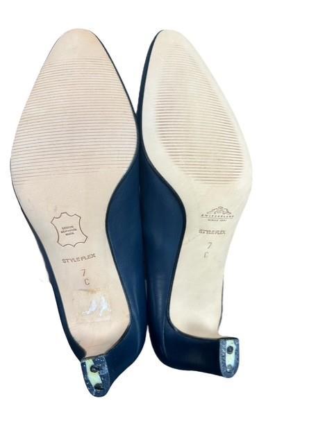 BALLY Rosebud Blue Leather Pump Heel Shoes Size 7 C Made in Italy Previously owned with heel caps missing so they have to be replaced Being sold AS-IS For Repairs Comes as shown