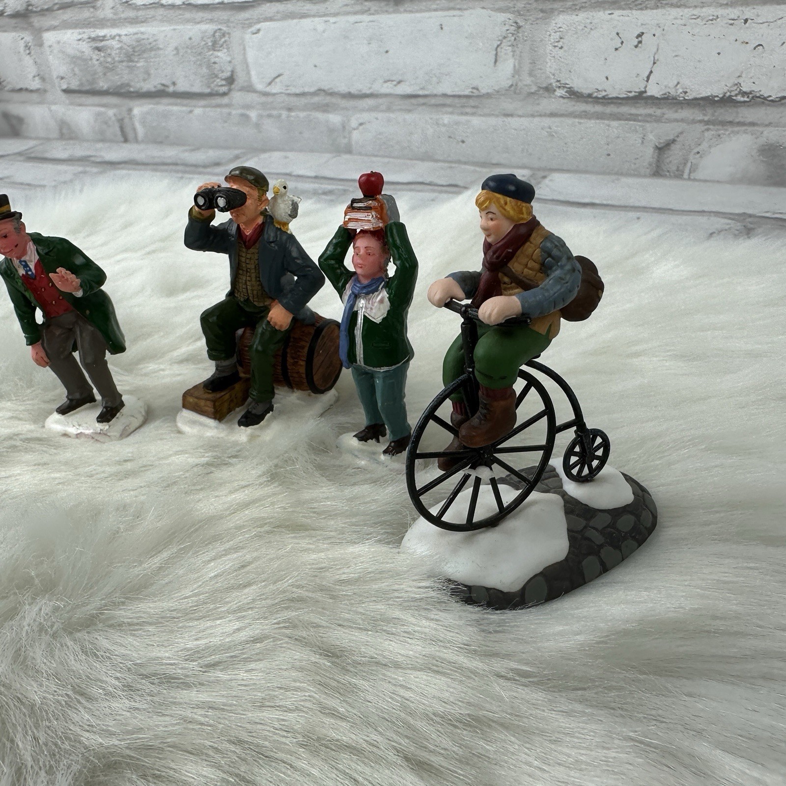 Lemax Dept 56 Christmas Village Accessories 4 Figures Bicycle Binoculars
